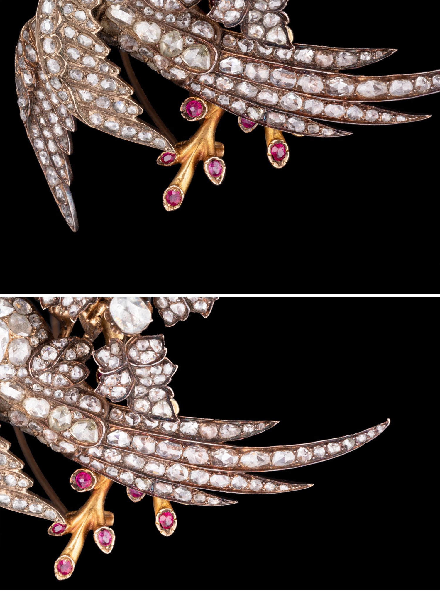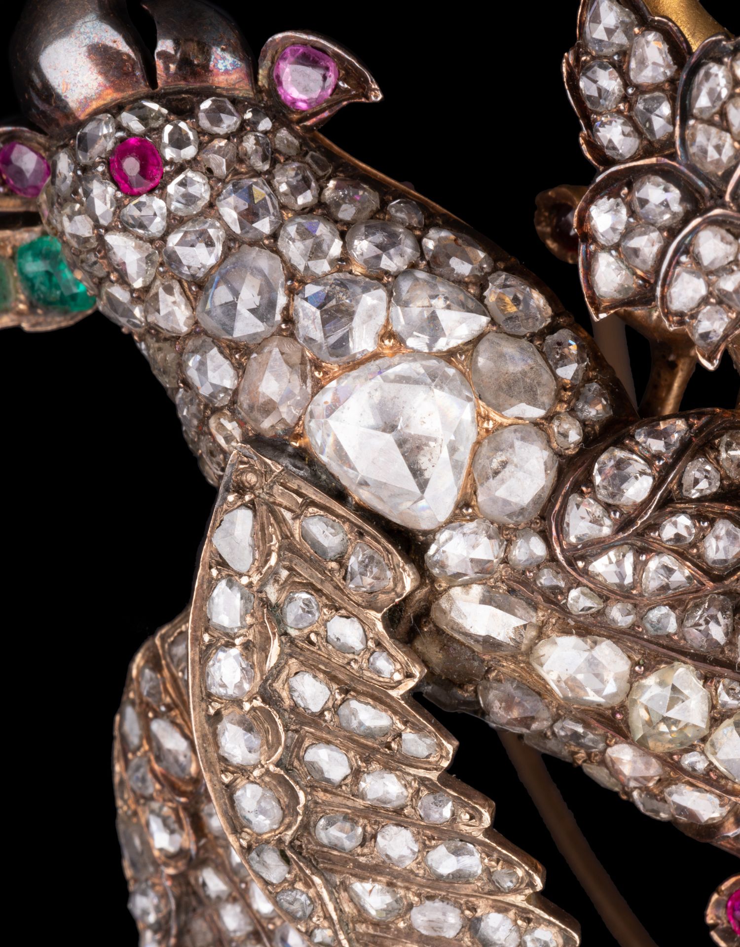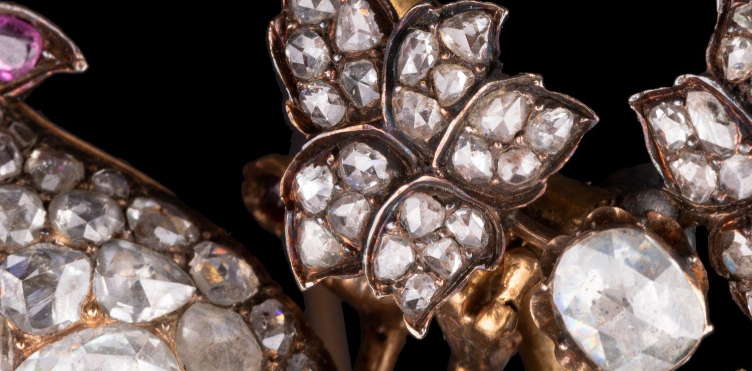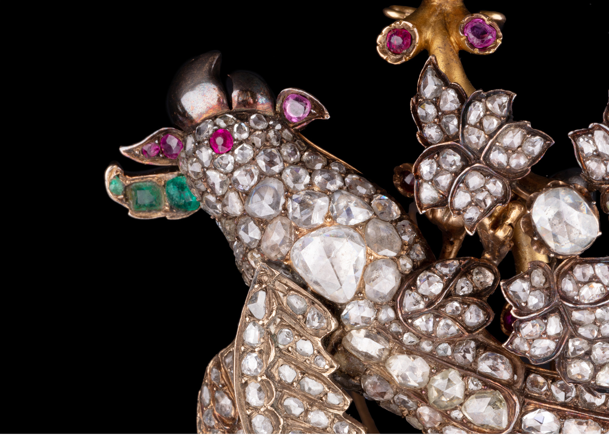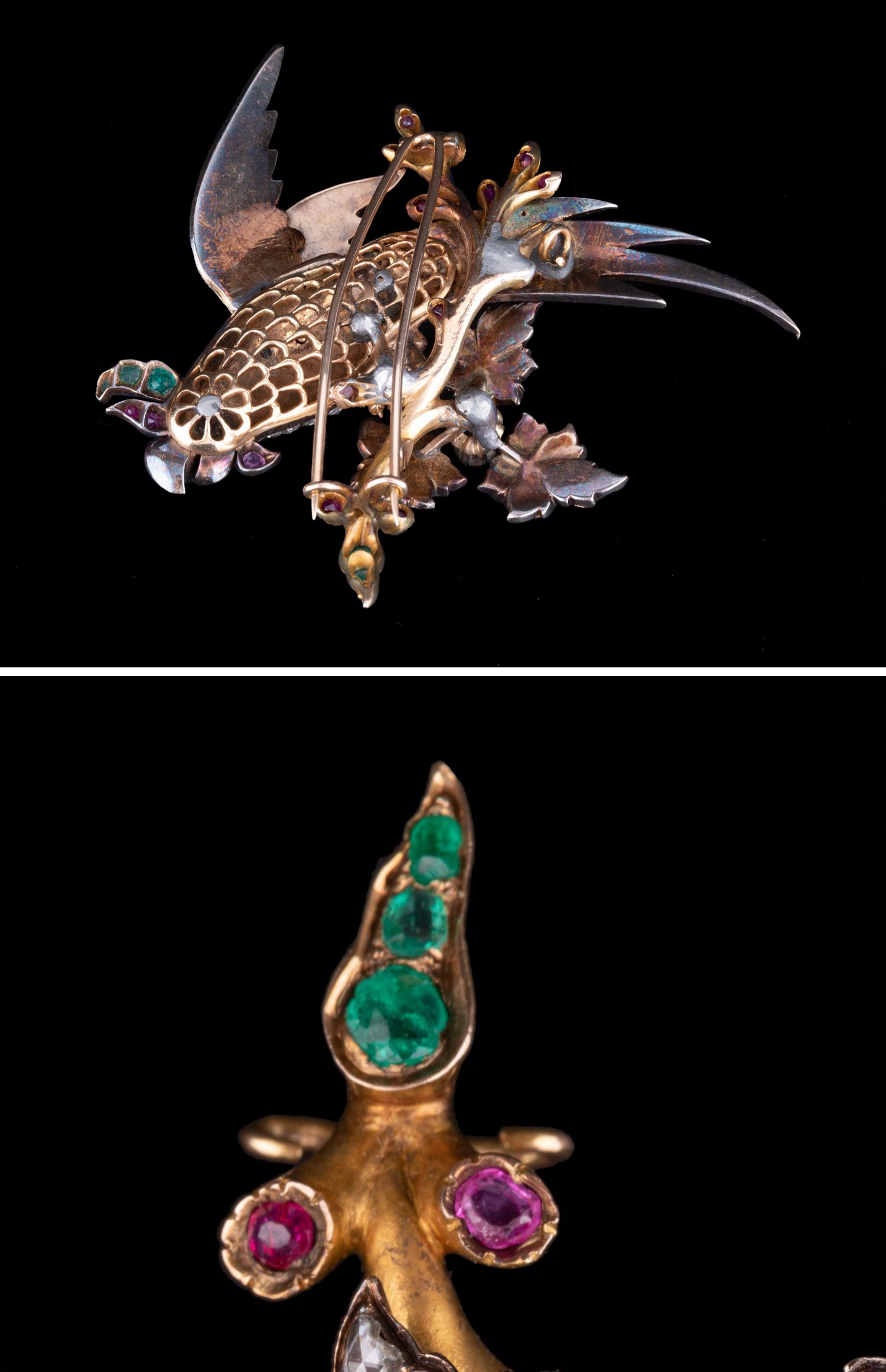 独角鹿西洋古董珠宝首饰黄金纯银镶钻石红宝石祖母绿鹦鹉造型胸针