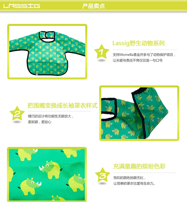 LASSIG长袖围嘴-犀牛LASCLTEXBLS088