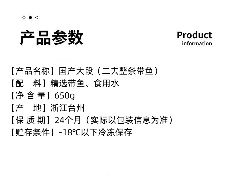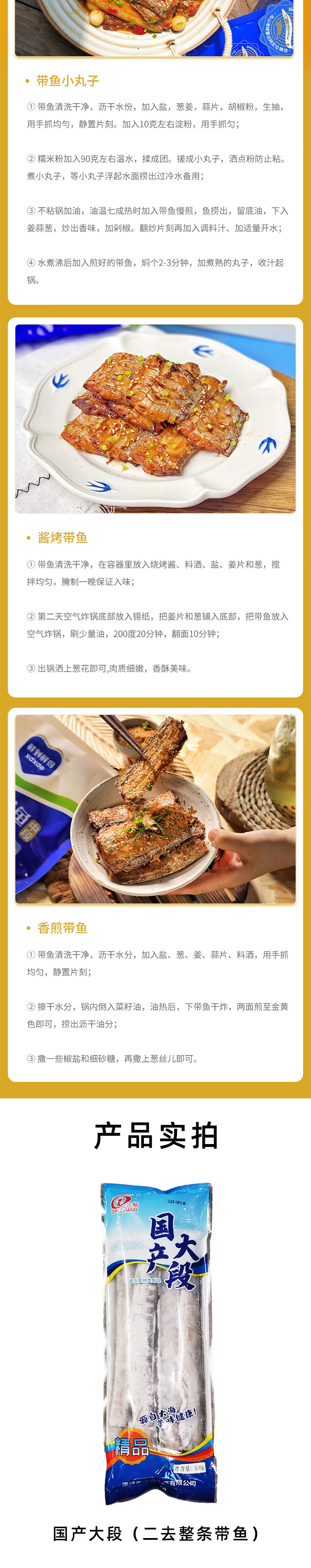 国产大段(二去整条带鱼)650g/袋【去头去尾整条中段】