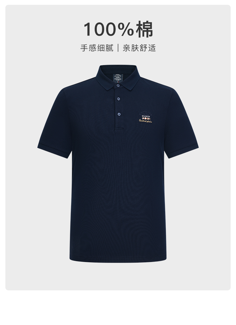 【纯棉】德鲨蓝色短袖POLO衫男青年2026夏新款休闲翻领T恤