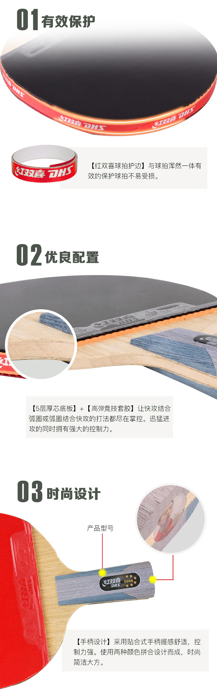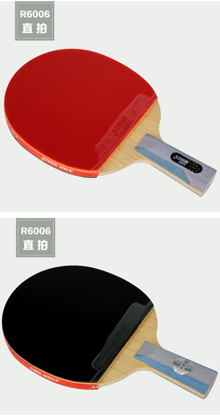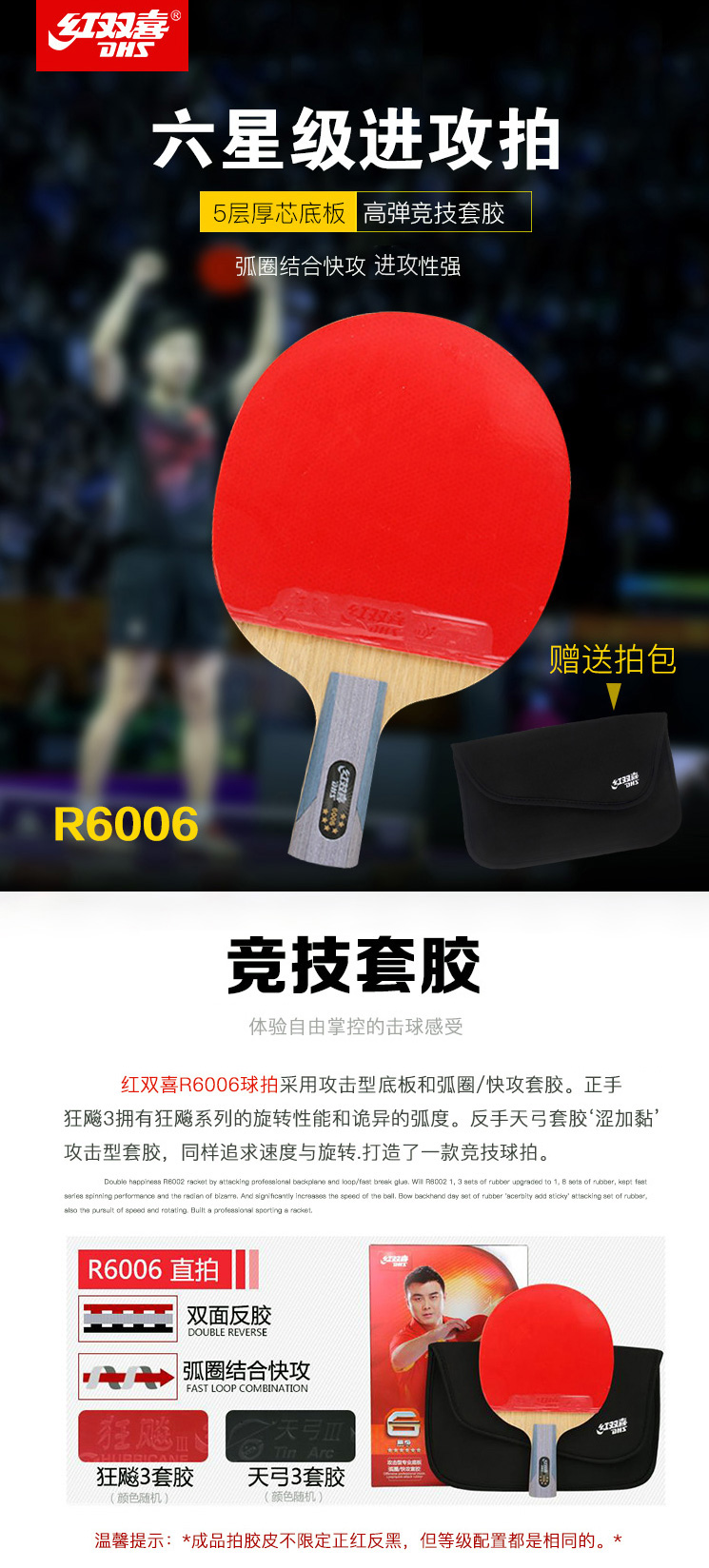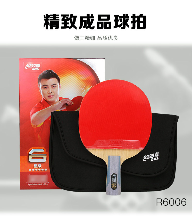 红双喜DHS乒乓球拍 直拍双面反胶弧圈结合快攻6星R6006(附拍套,单块装)