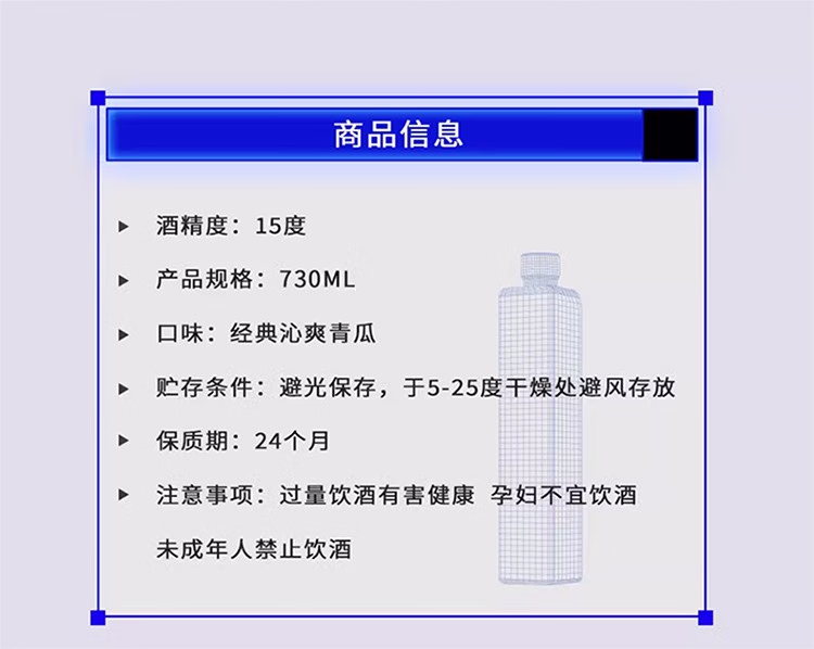 布鲁大师 0糖0脂0卡15度青瓜味利口酒730ml*1瓶