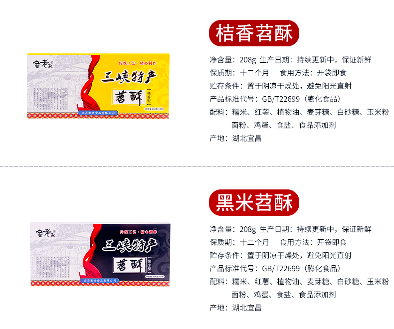 秭归县 三峡苕酥 4盒经典装 多口味208克*4(送手提袋)