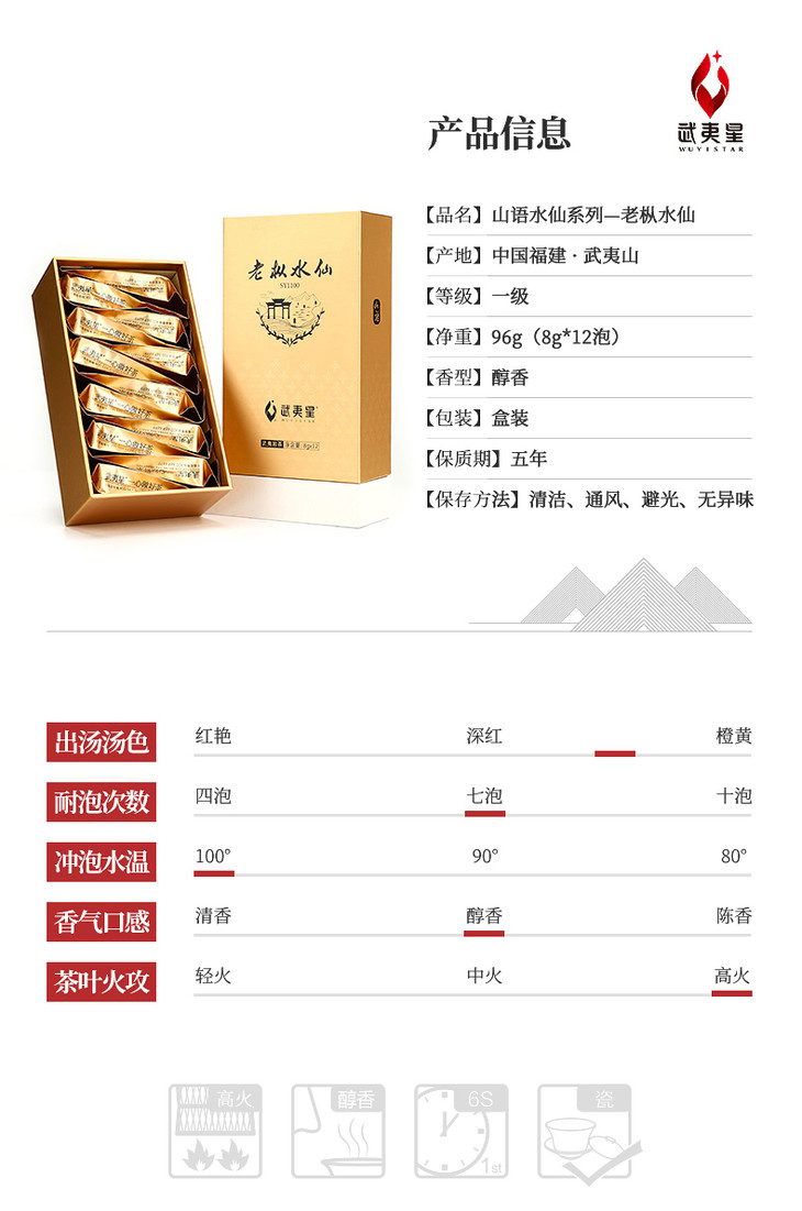 武夷星 山语 老枞水仙 武夷岩茶 礼盒 96g