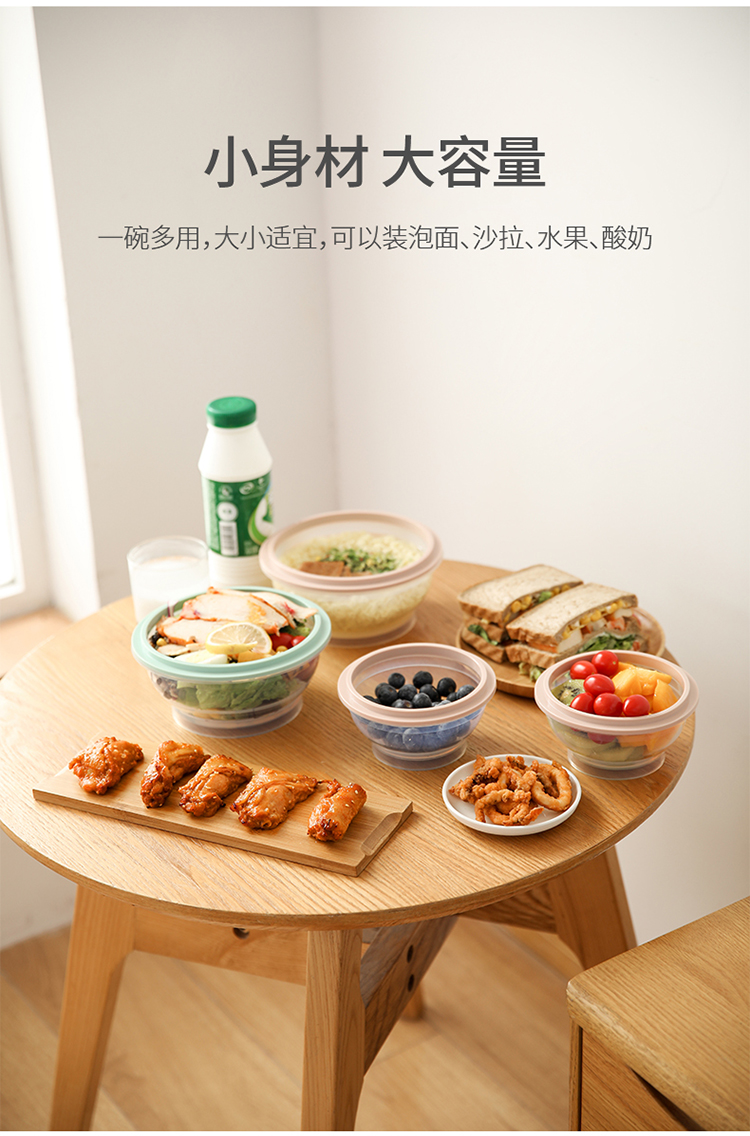 FaSoLa便携旅行硅胶折叠碗带盖泡面碗伸缩耐热户外野餐具旅游碗
