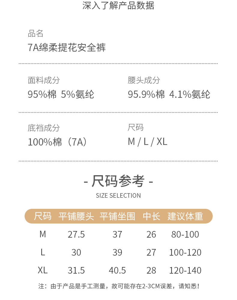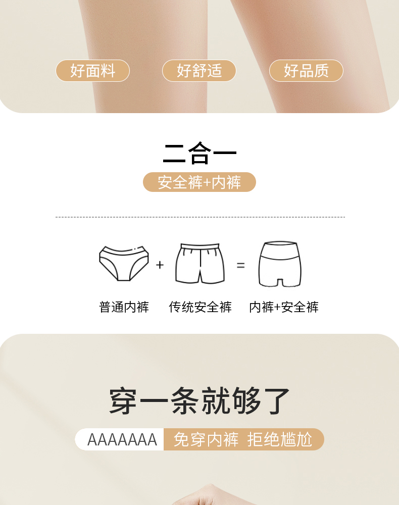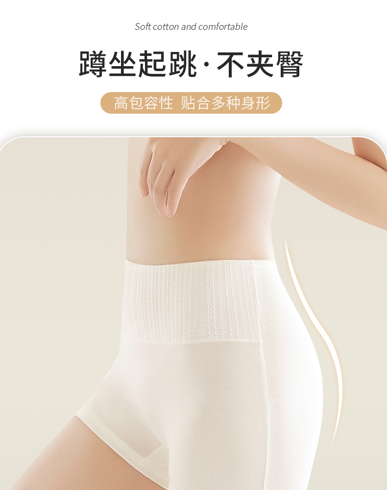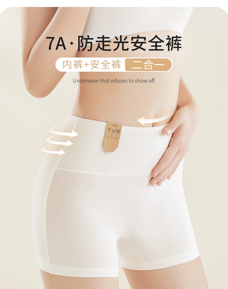 洁丽雅7A防走光安全裤平角裤高弹亲肤收腹提臀纯棉底裆内裤女