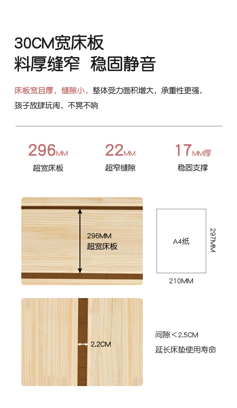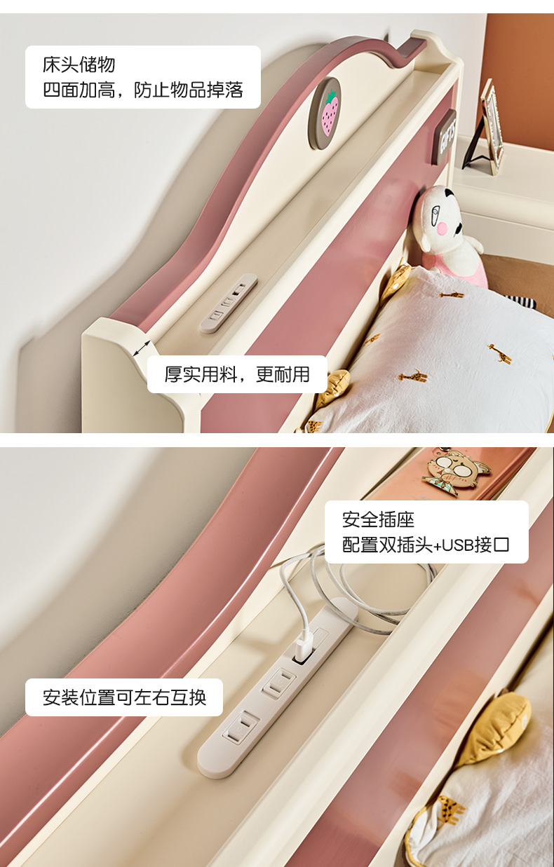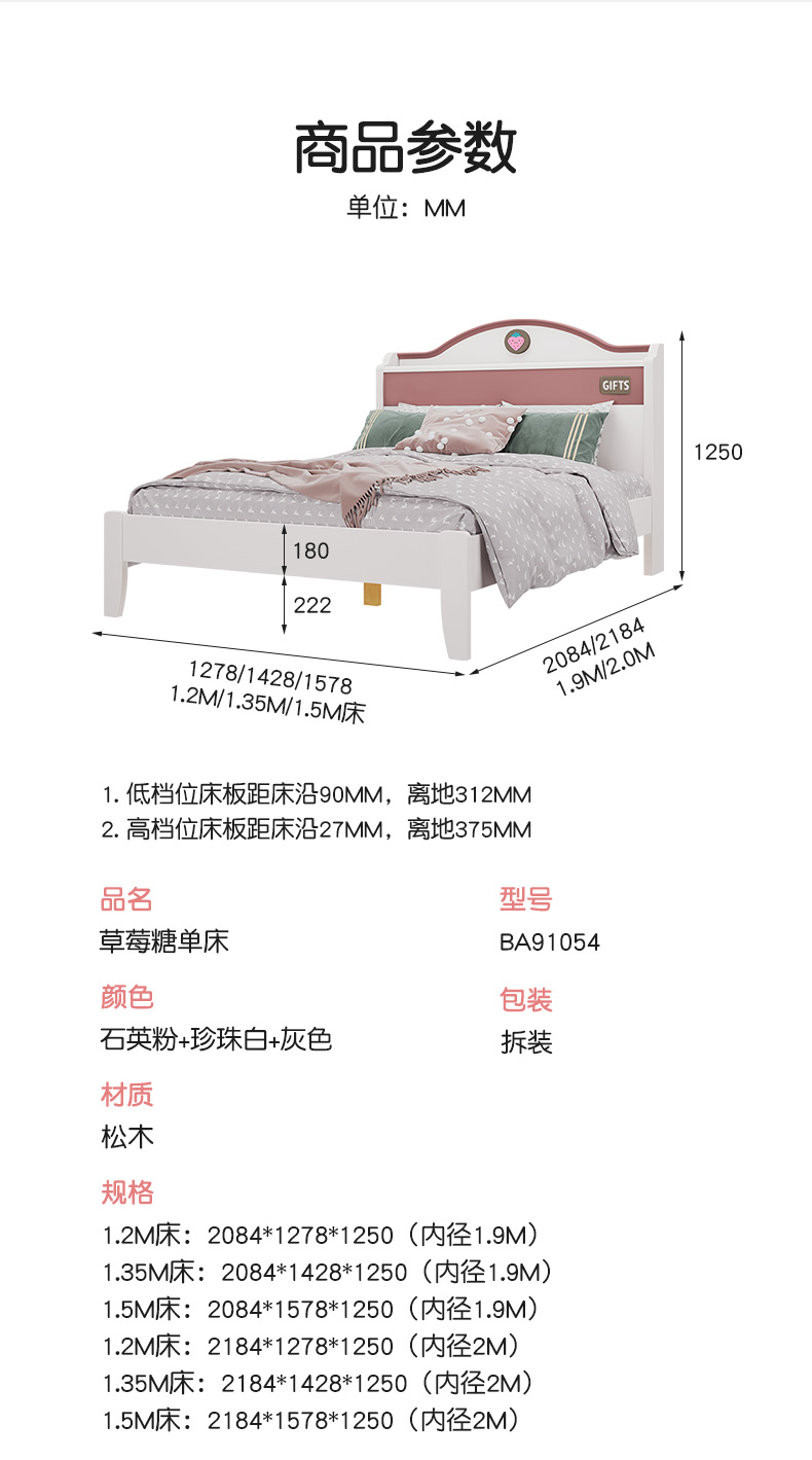 喜梦宝全实木成人床儿童床女孩公主床现代简约型接拼床粉色实木床 草莓糖