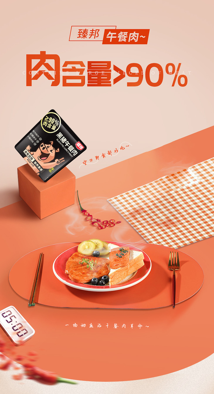【预售-4月13日配送】臻邦黑猪午餐肉(原味)/1包(50g*8小包)
