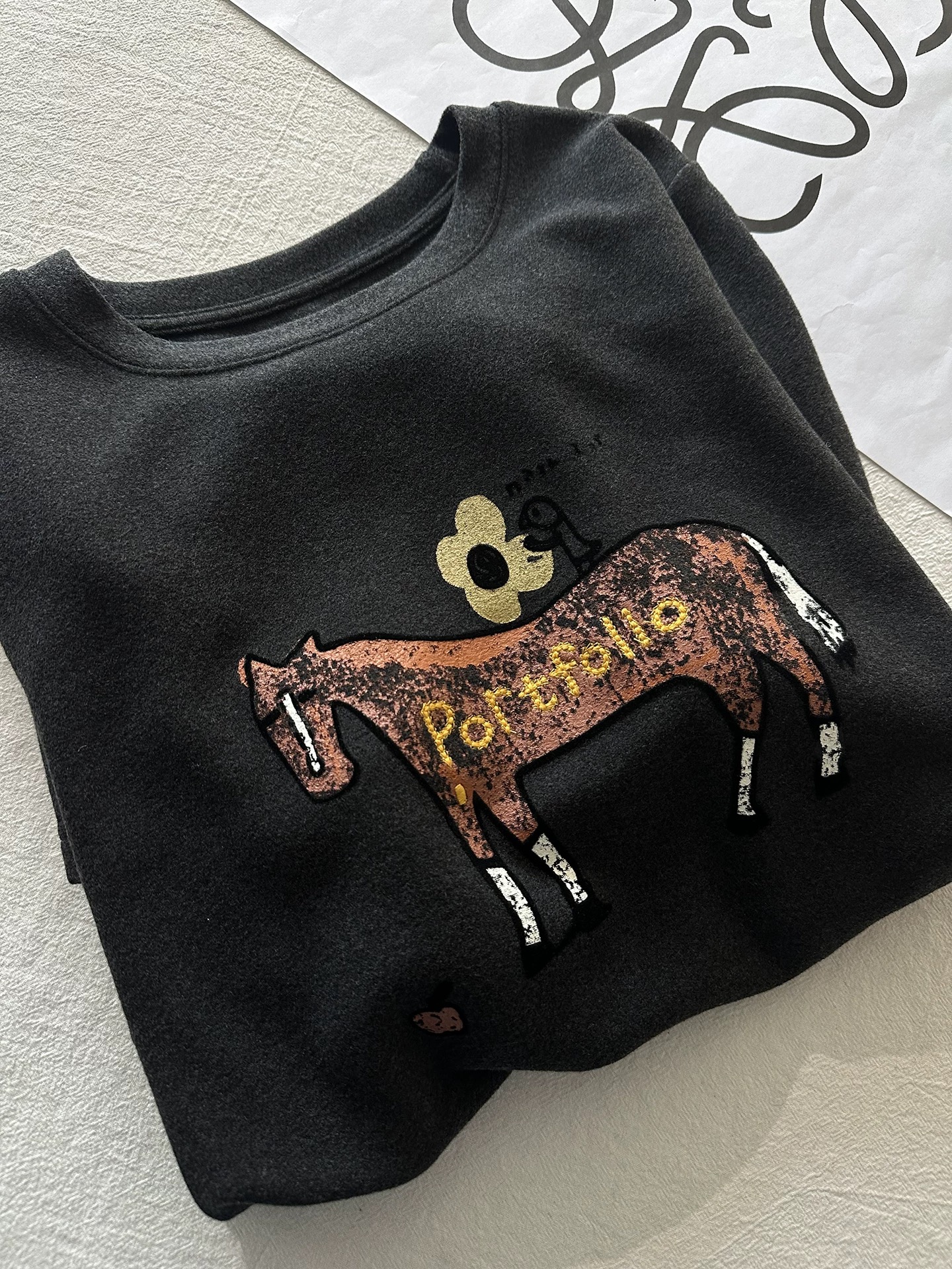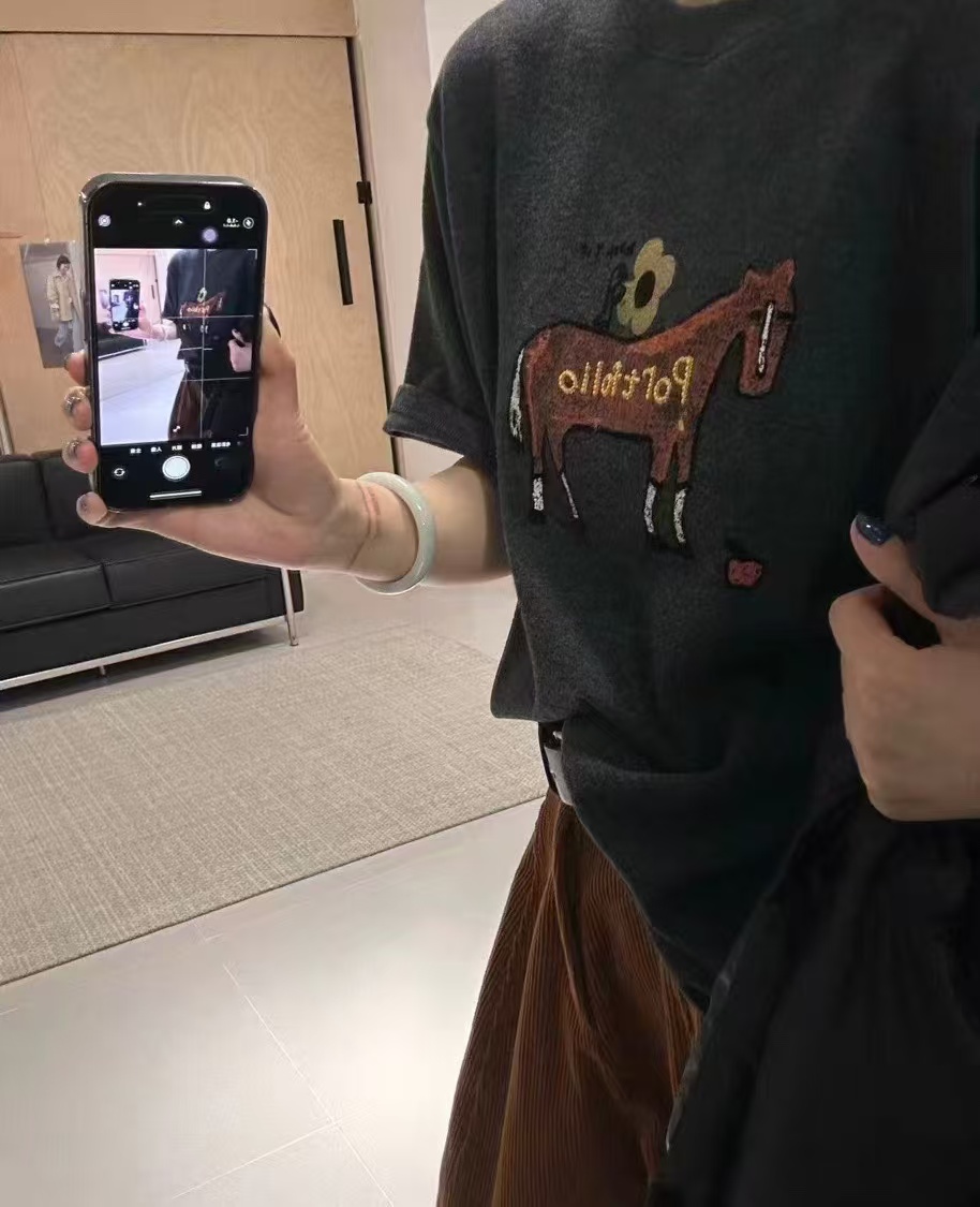 老米优品🎈3-5天《花朵小马🐎刺绣短袖澳绒tee 》重工刺绣,双面澳绒云朵般轻暖舒适~T260226B