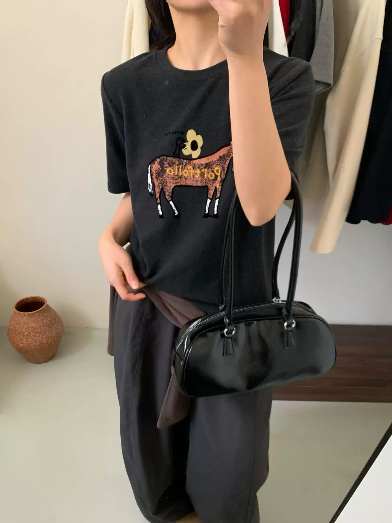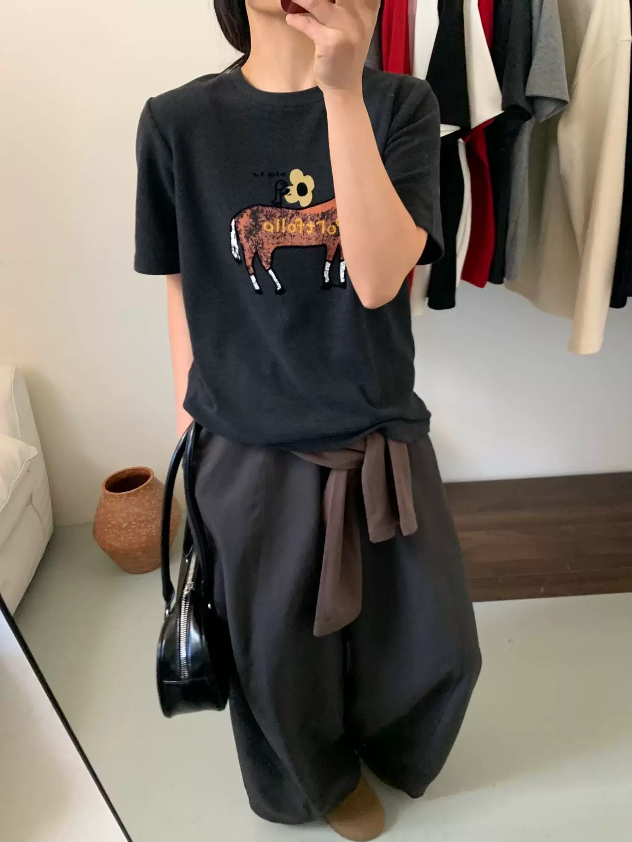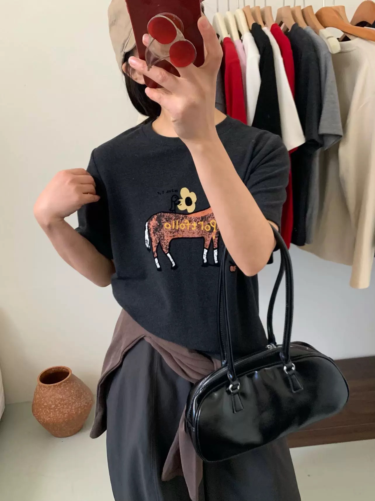 打破纯色T恤的单调,随手一拍都是韩系博主既视感。