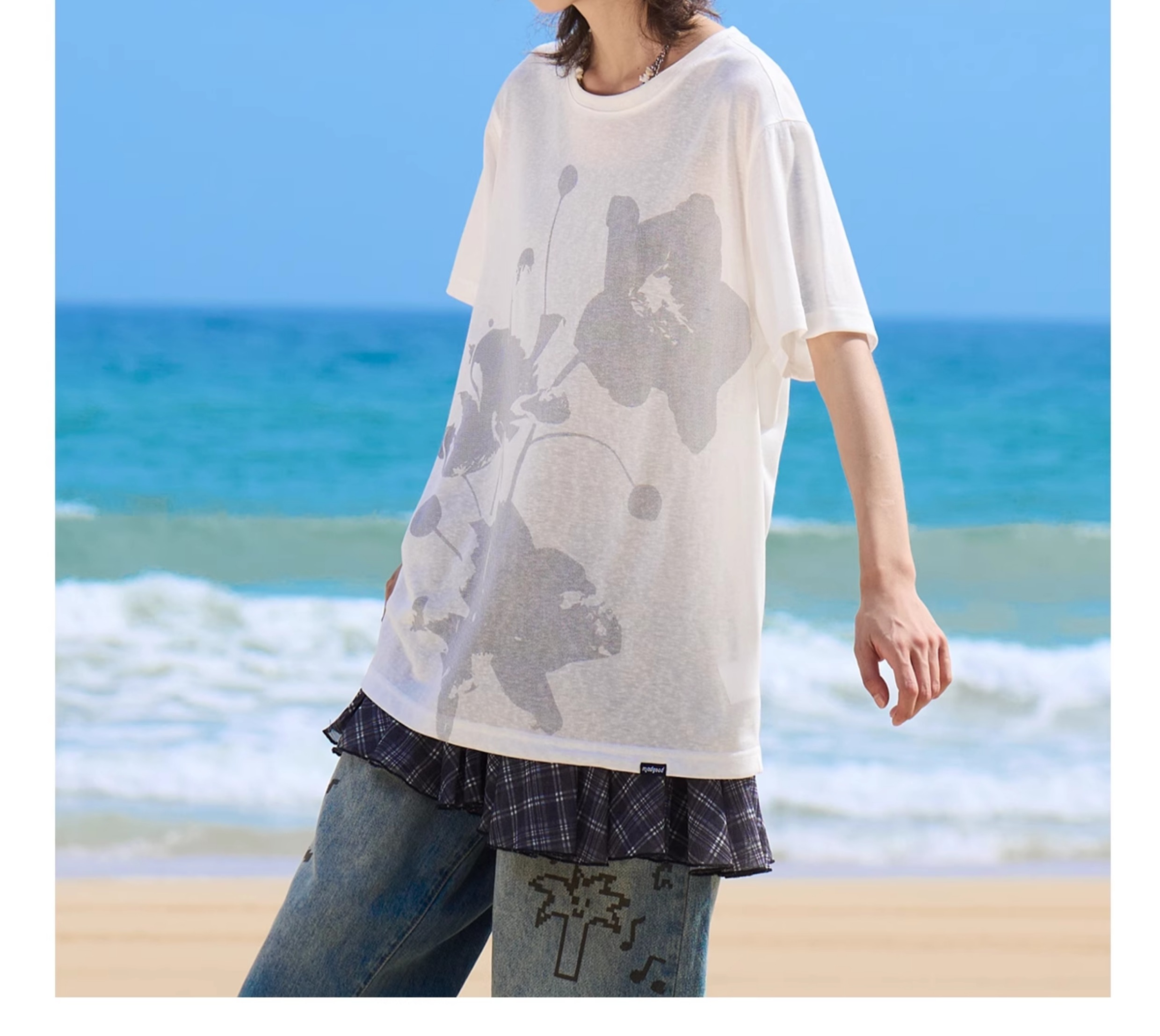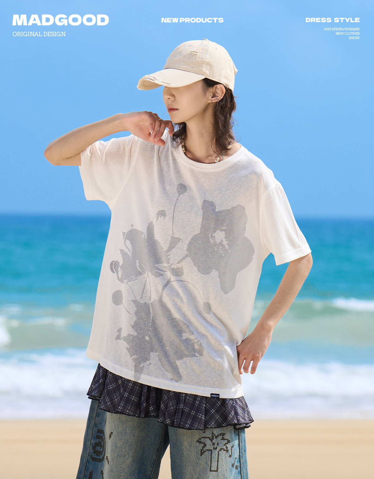 马得工地/MDGDTX12016/花卉印花低克重雪花棉T恤