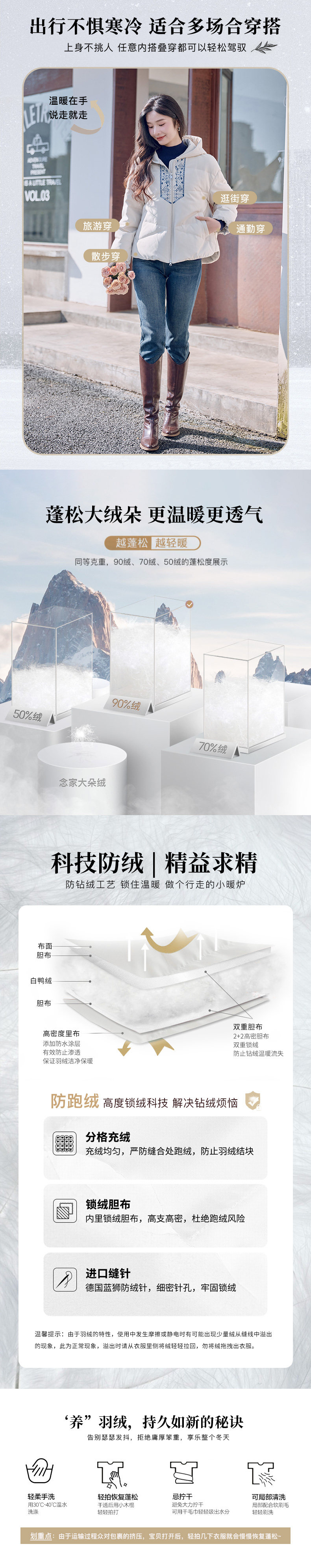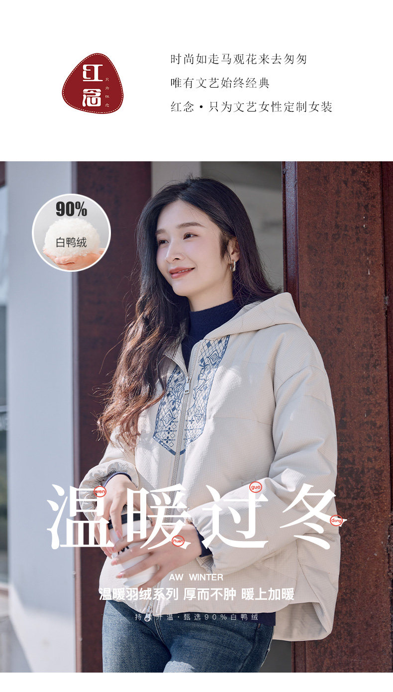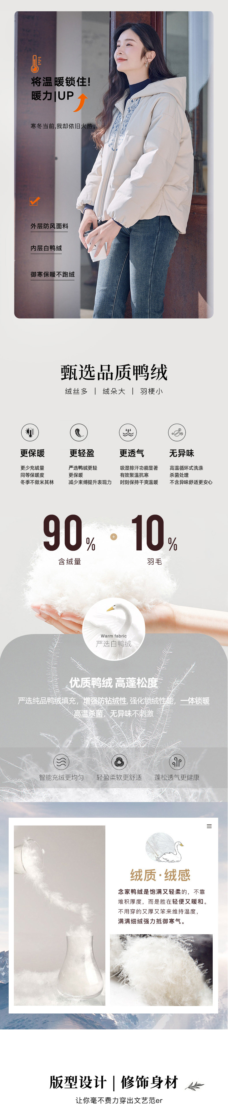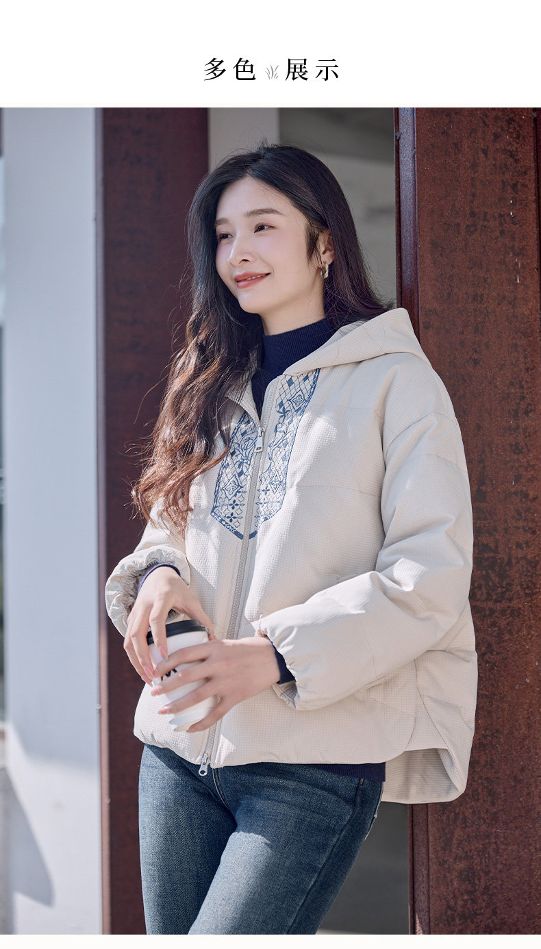红念米杏色连帽刺绣羽绒服女短款设计感冬季2025新款冬装外套上衣