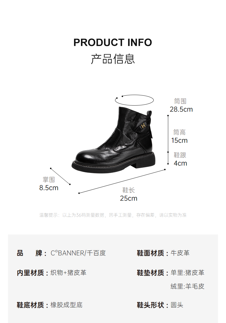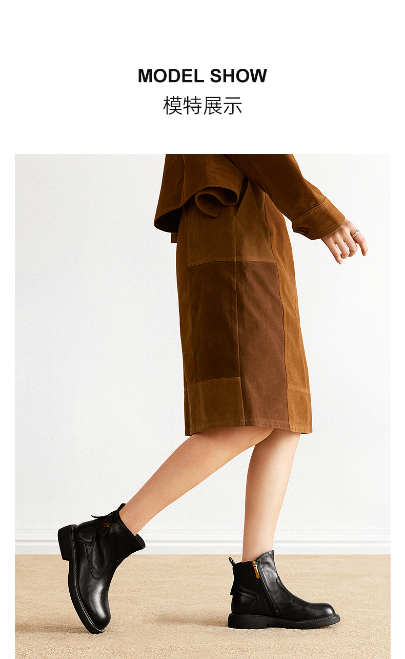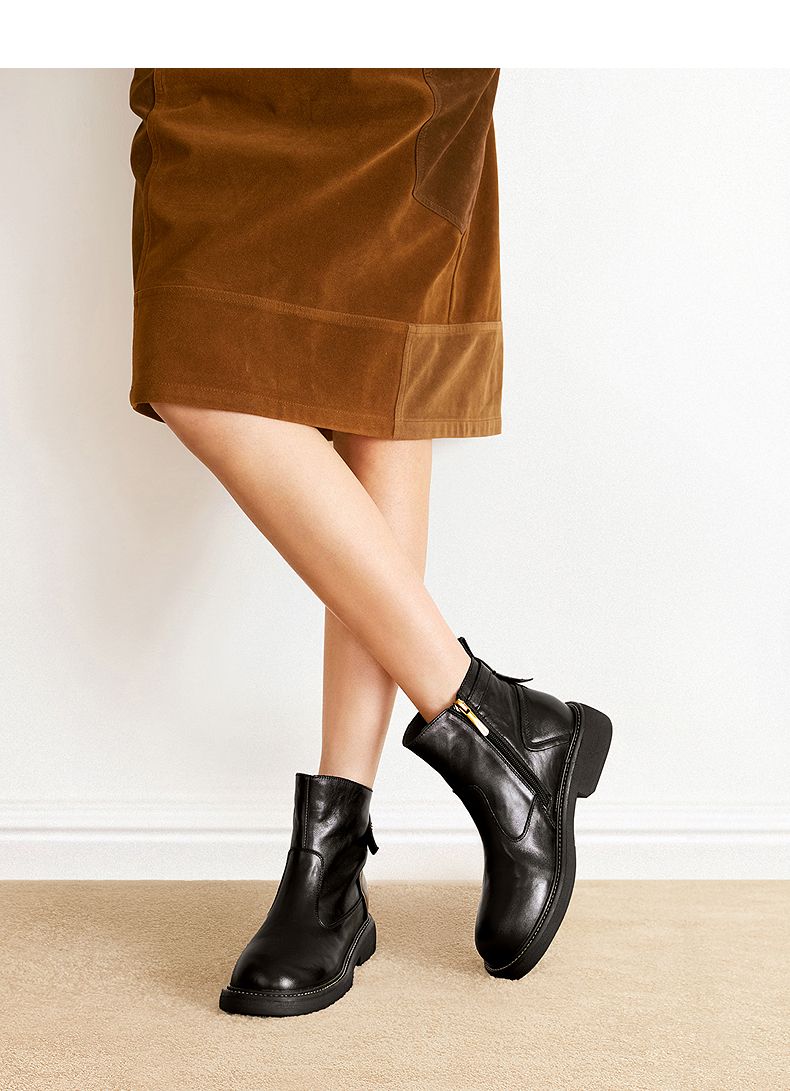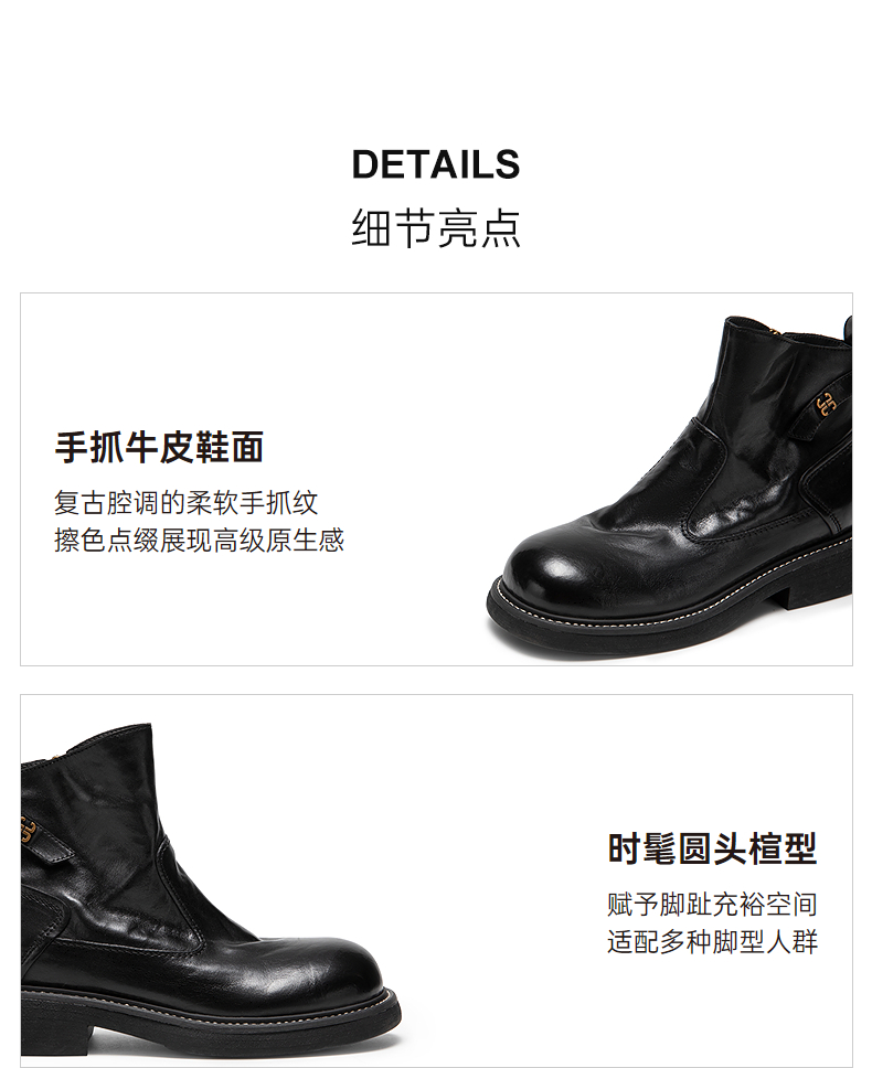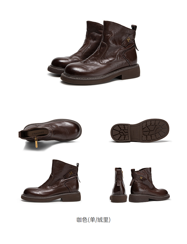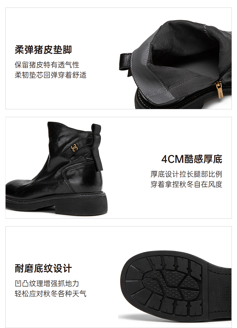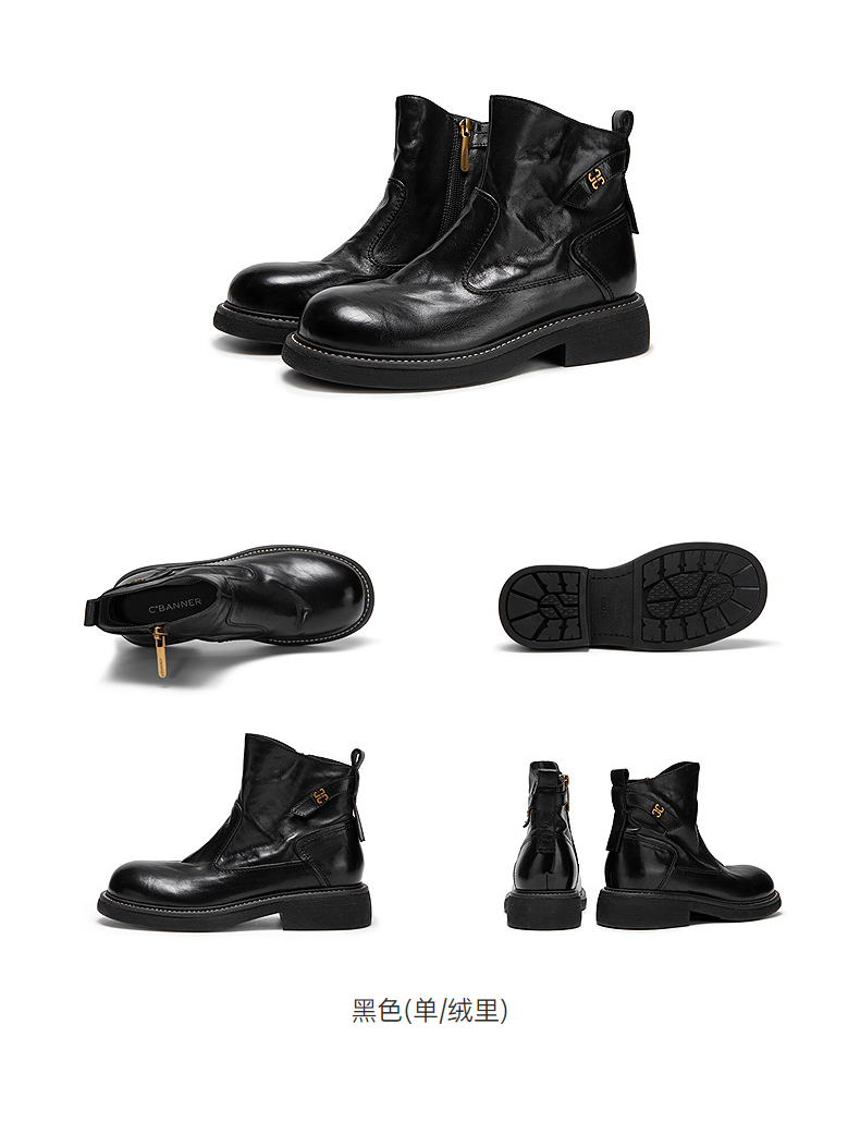 千百度手抓皮切尔西靴女加绒保暖厚底超火小短靴子A25598681