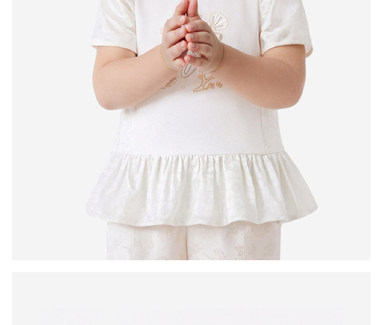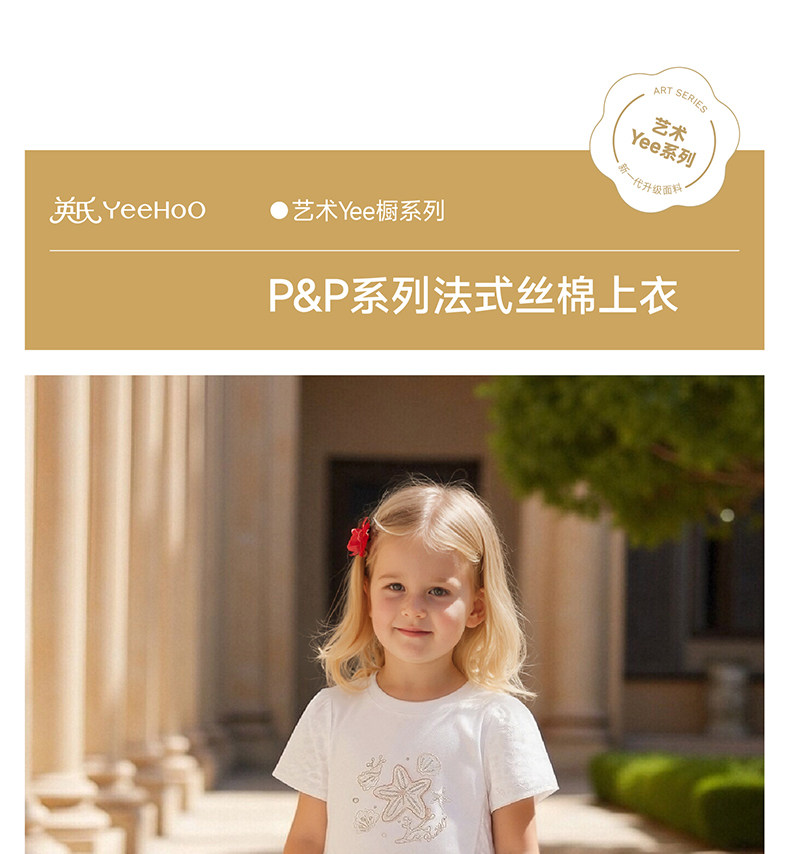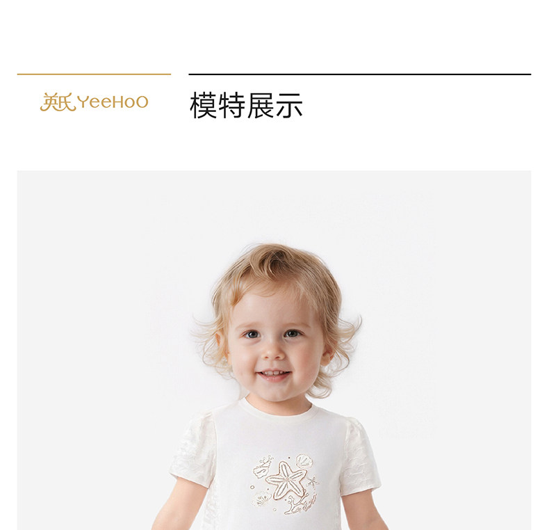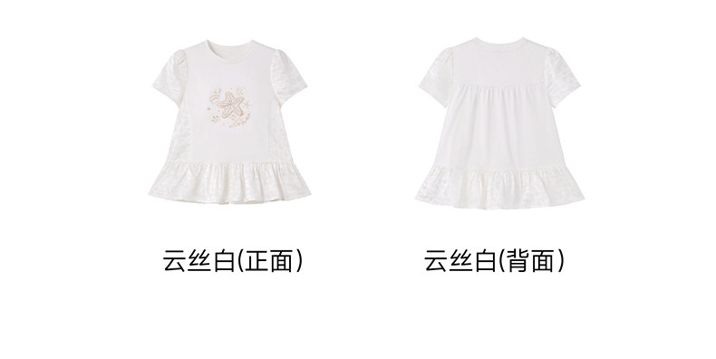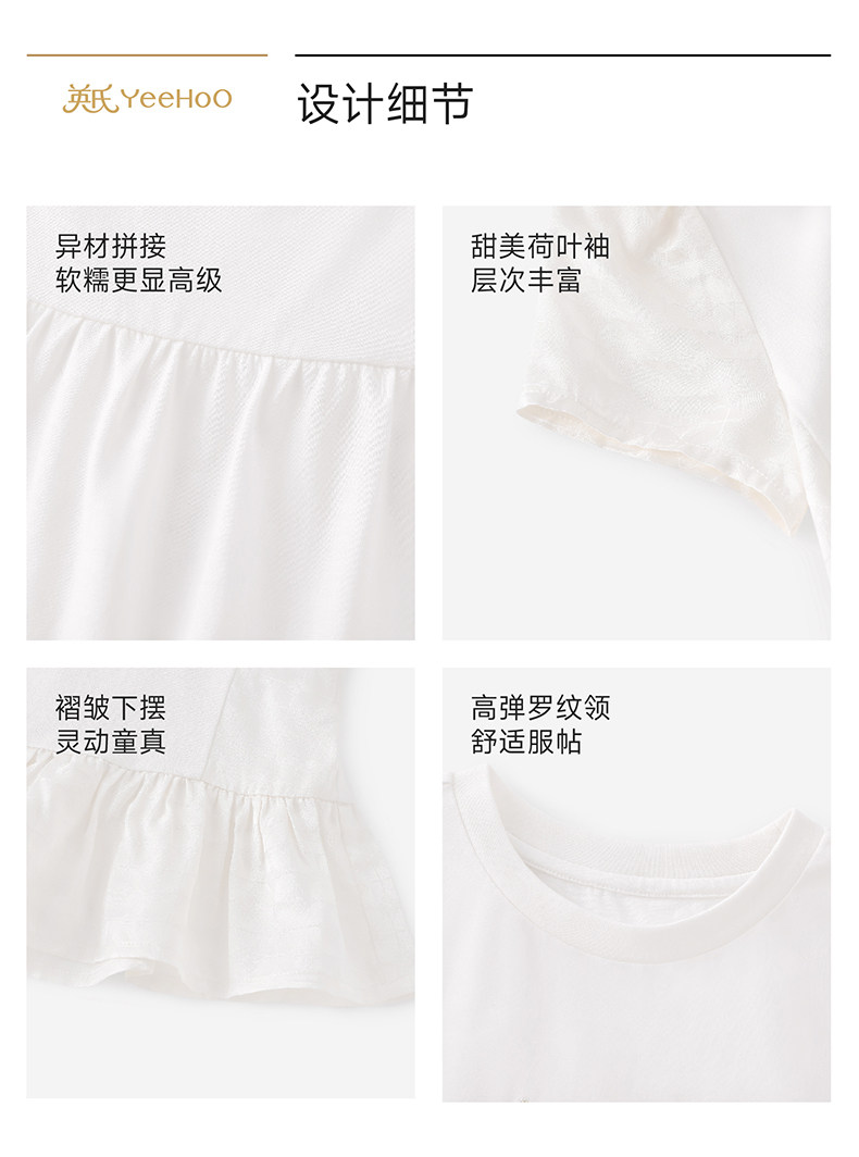 英氏女童短袖t恤夏季新款云丝白提花儿童圆领上衣YRTCJ2S040A