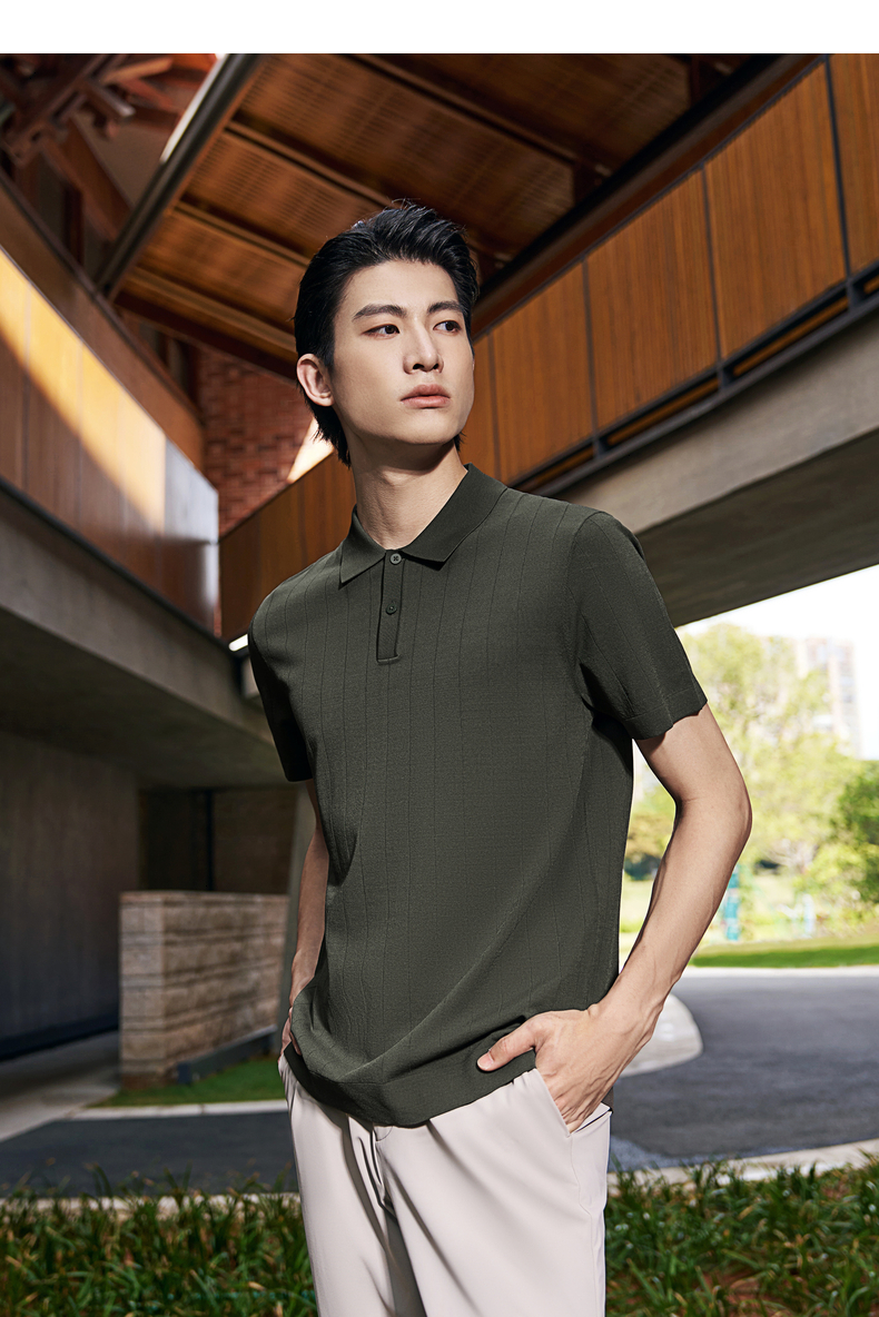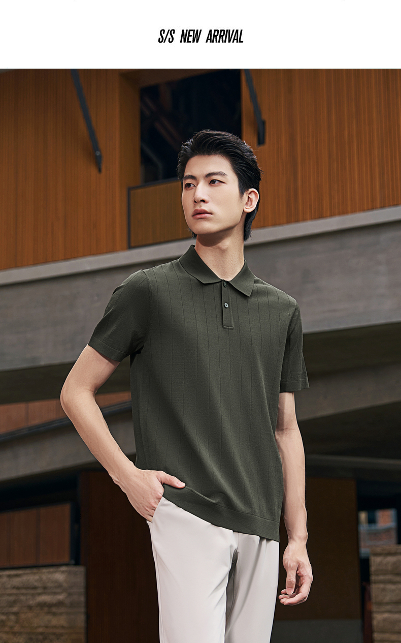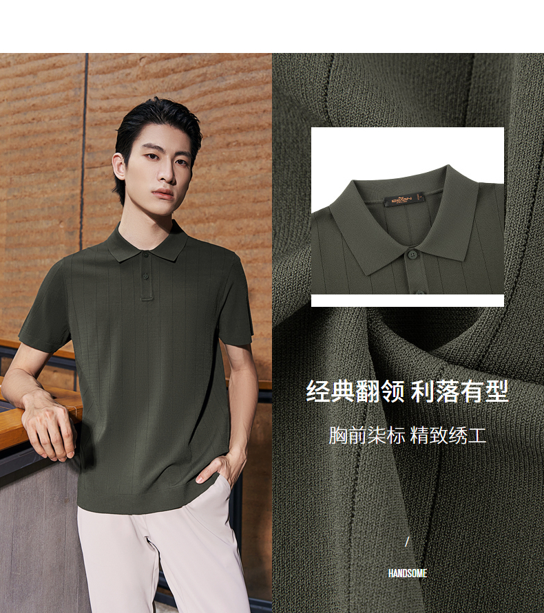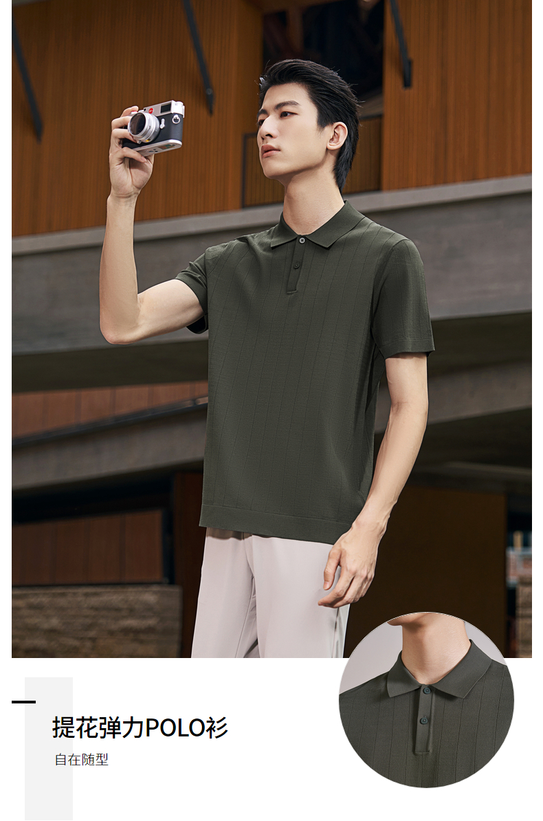 【伊力特/条纹提花】柒牌男士短袖POLO衫2026夏季新款商务上衣 130T70240