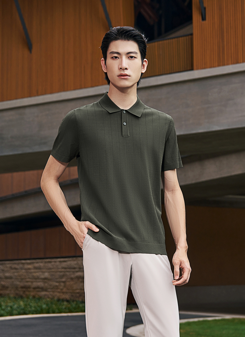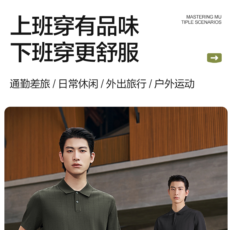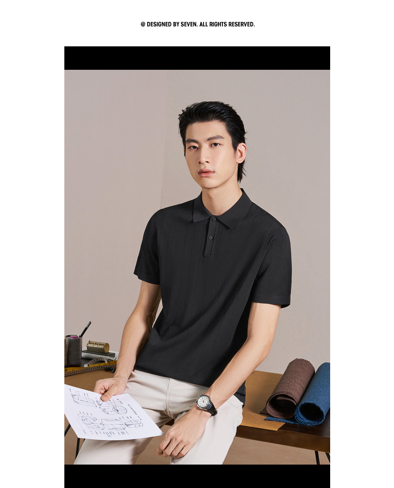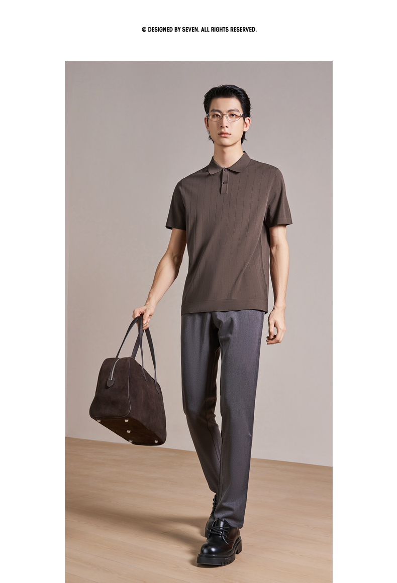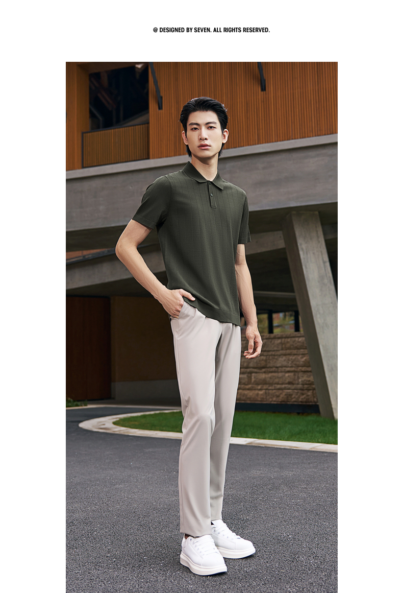【伊力特/条纹提花】柒牌男士短袖POLO衫2026夏季新款商务上衣 130T70240