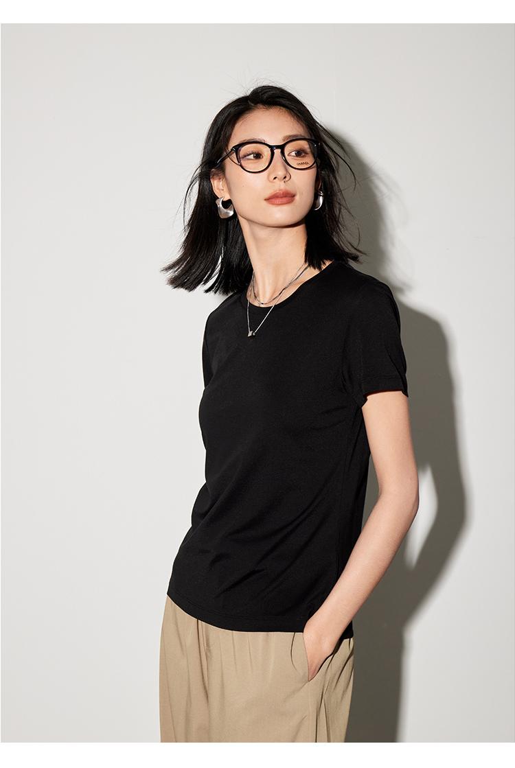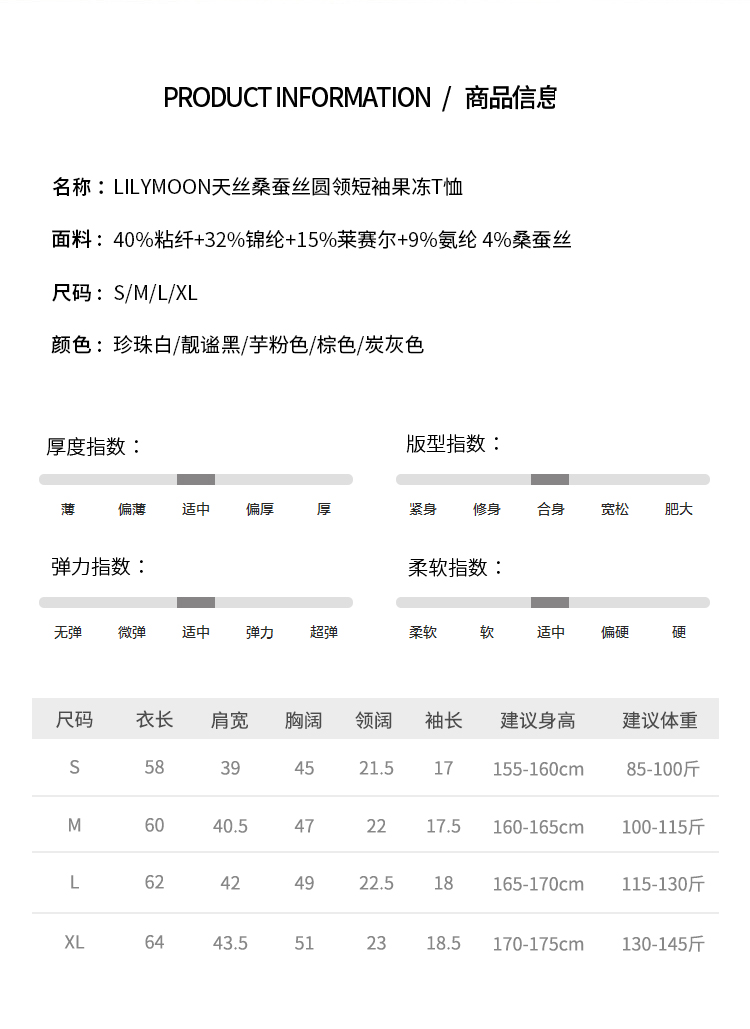 【高品质天丝+桑蚕丝】Lilymoon 天丝桑蚕丝圆领短袖果冻T恤简约舒适休闲纯色百搭