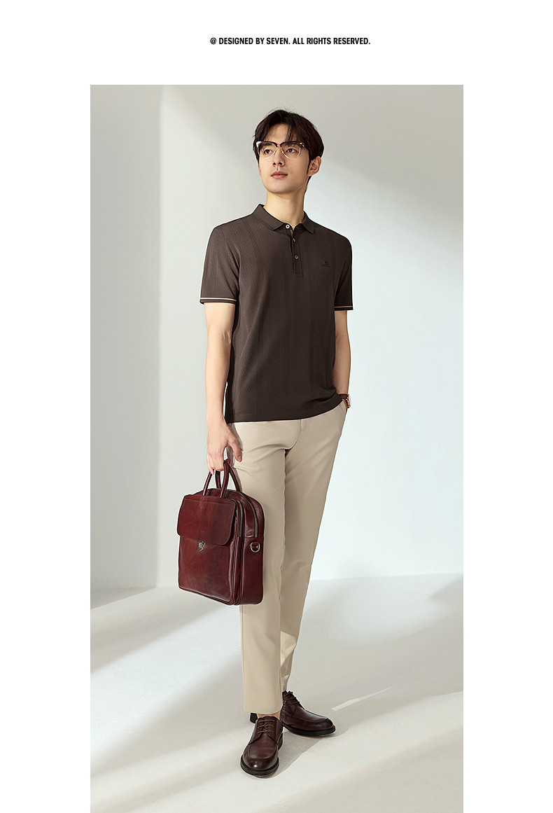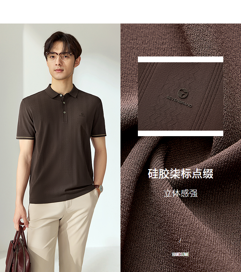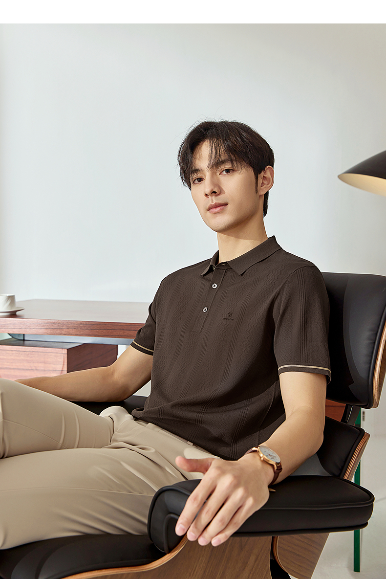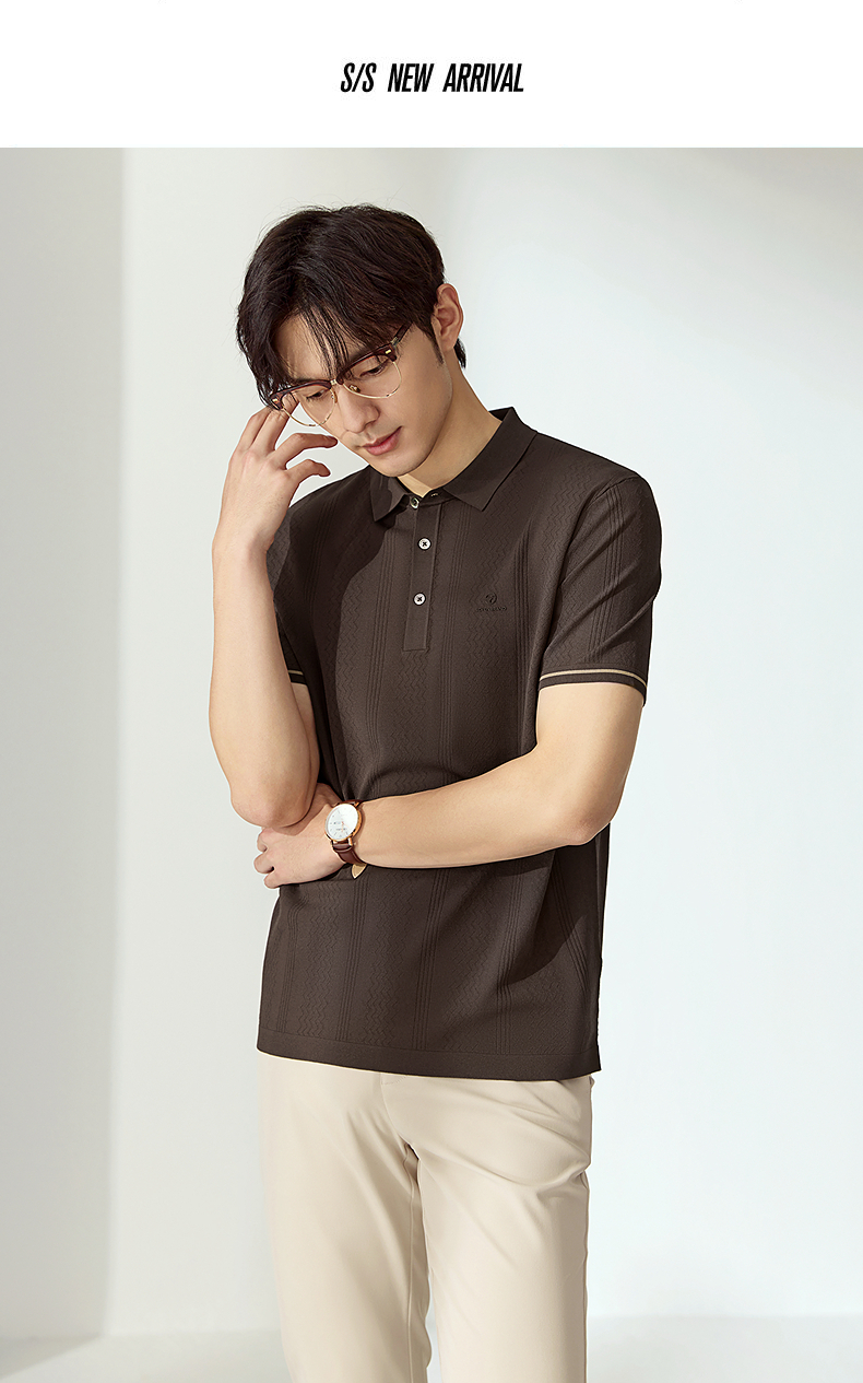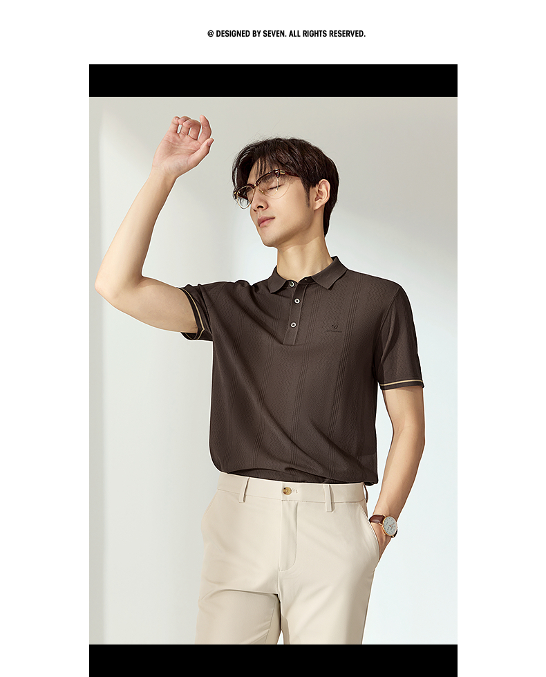【高端系列】柒牌男士短袖polo衫夏季新款条纹提花伊力特弹力上衣128T71220
