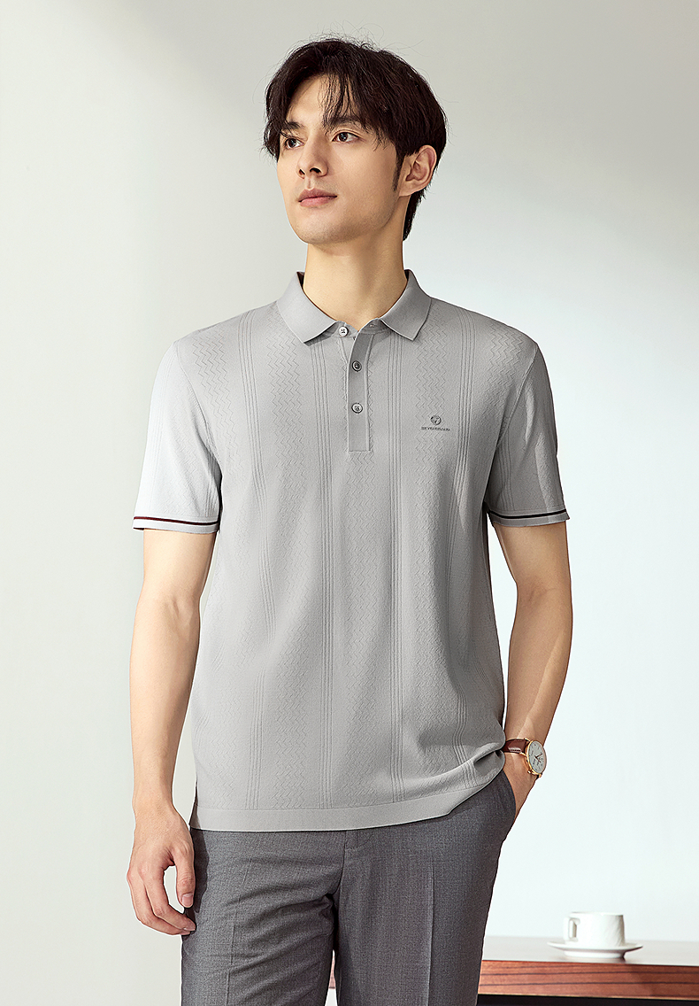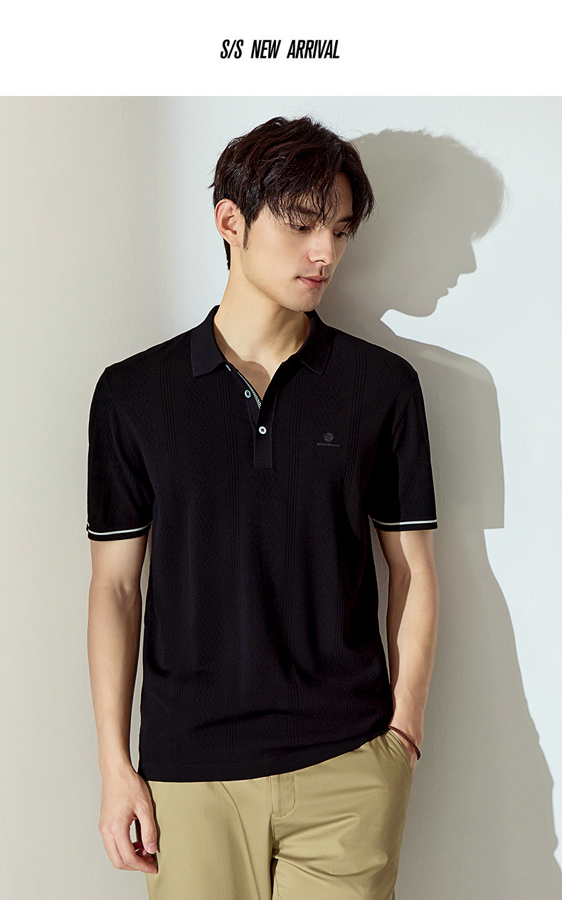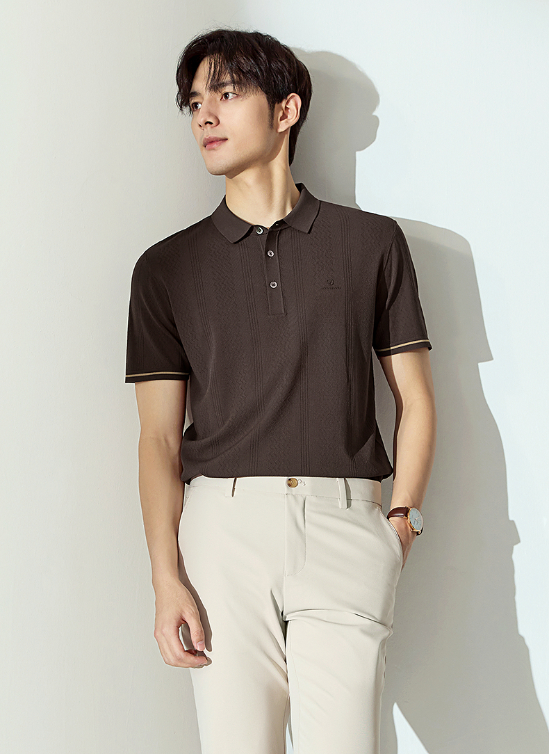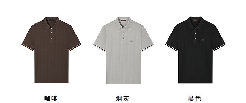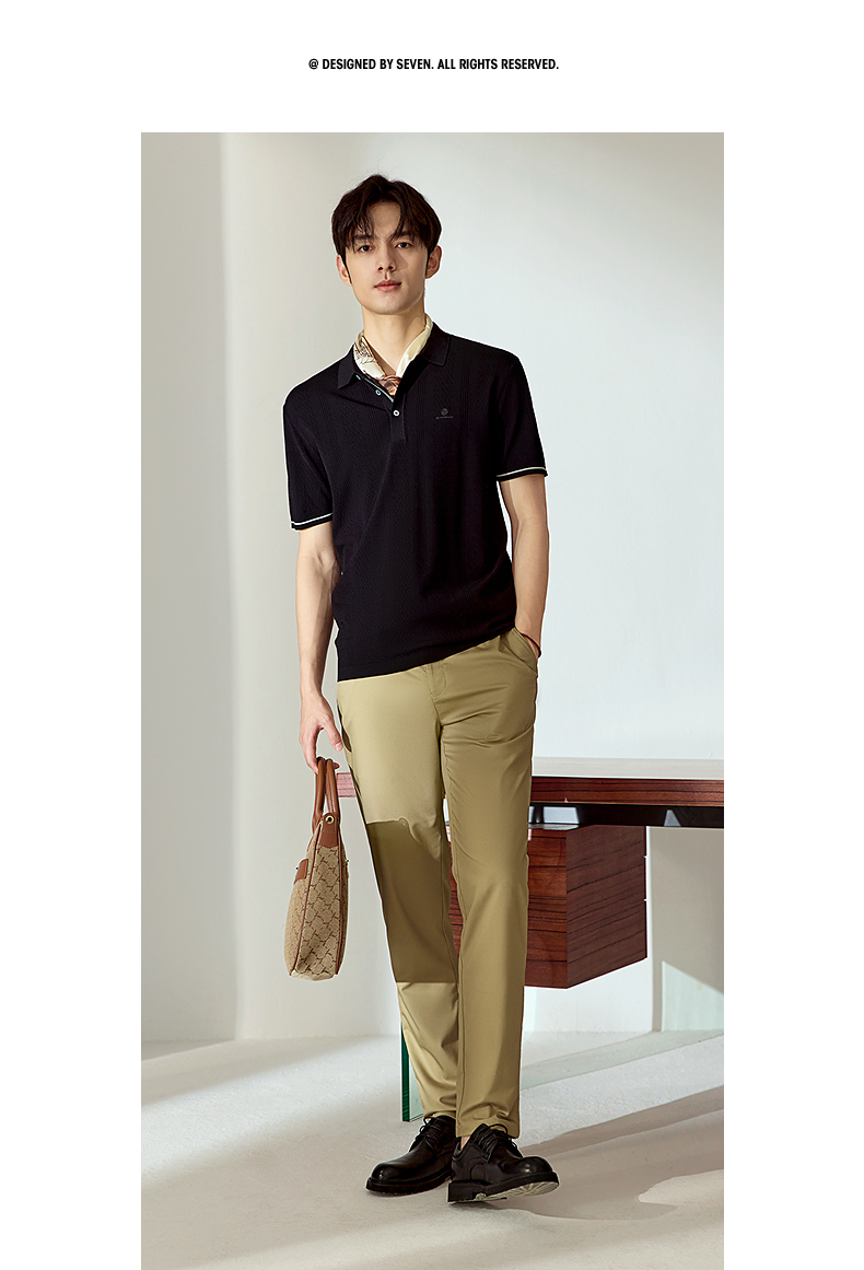 【高端系列】柒牌男士短袖polo衫夏季新款条纹提花伊力特弹力上衣128T71220