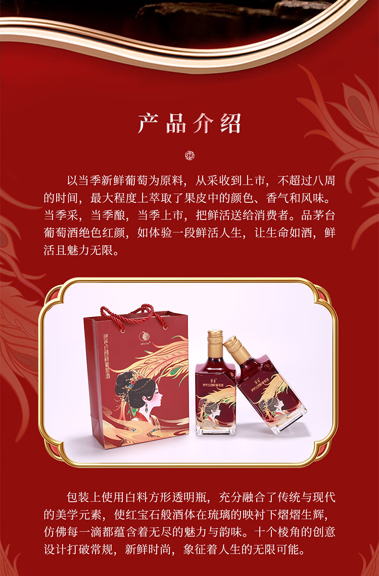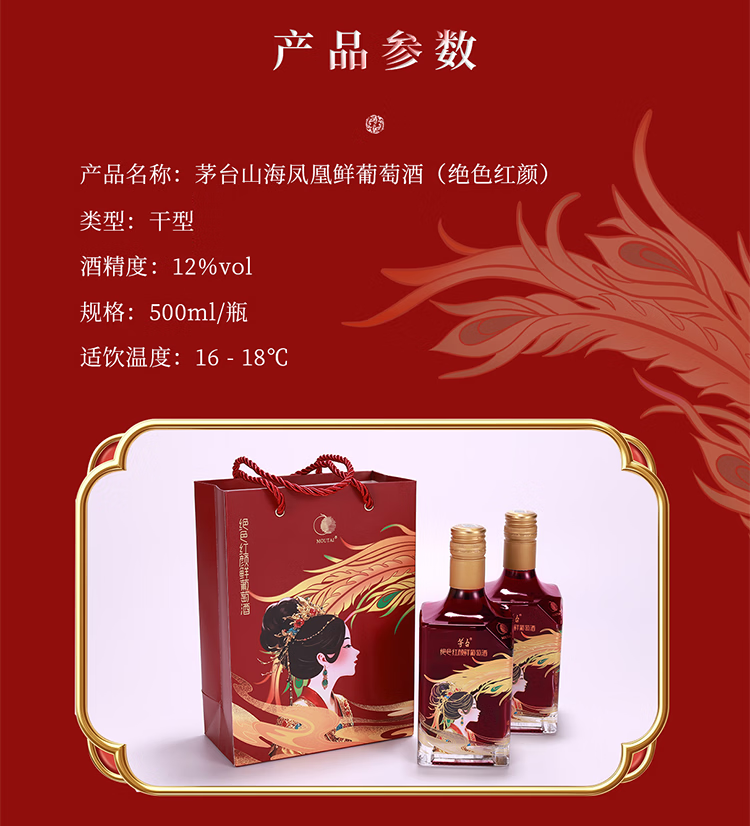 12度茅台山海凤凰鲜葡萄酒(绝色红颜)新版 500ml 单瓶