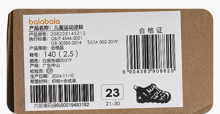 巴拉巴拉童鞋儿童运动凉鞋男童女童鞋溯溪鞋2025夏新款防滑透气鞋