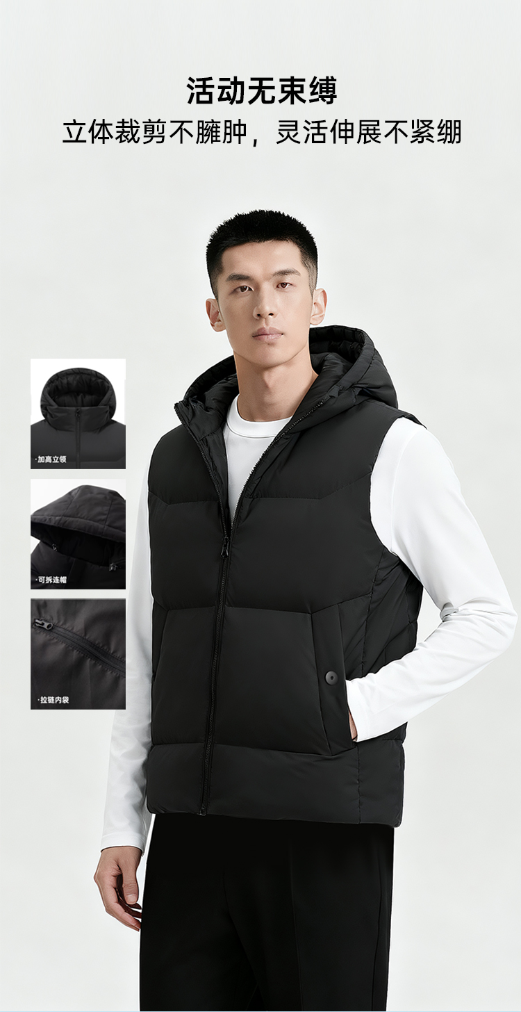 【防风防水加厚羽绒马甲】白鸭绒休闲马甲防风保暖无袖羽绒服外套BT504