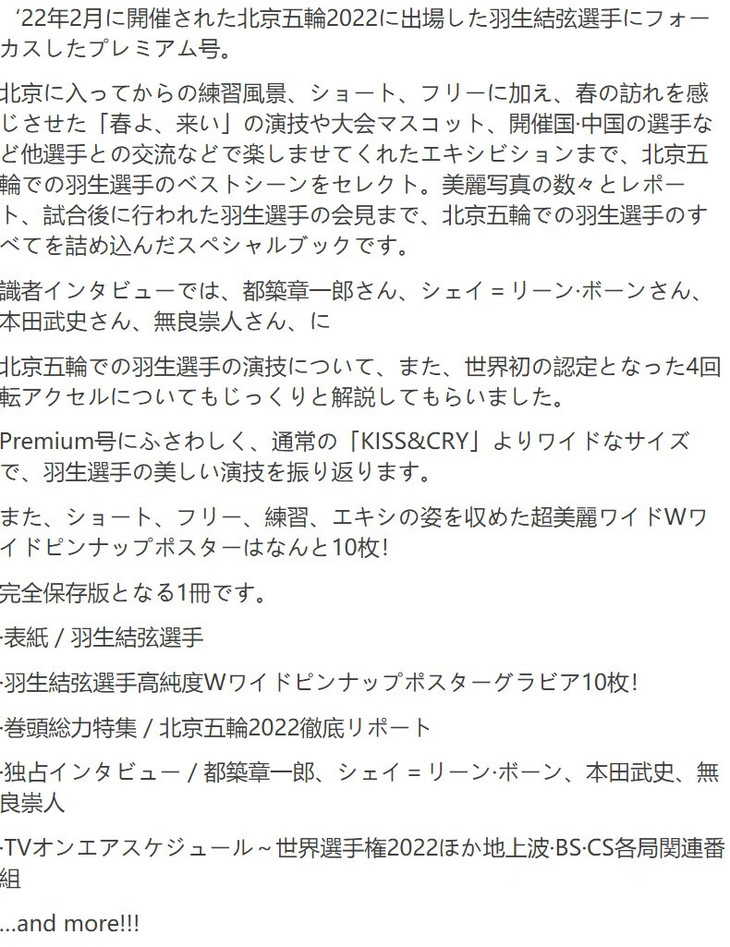 【中商原版】羽生结弦 KISS&CRY Vol.43 北京冬奥会豪华特集 10张海报 日文原版 TVガイド特別編集 KISS&CRY Vol.43 北京五輪Premium号