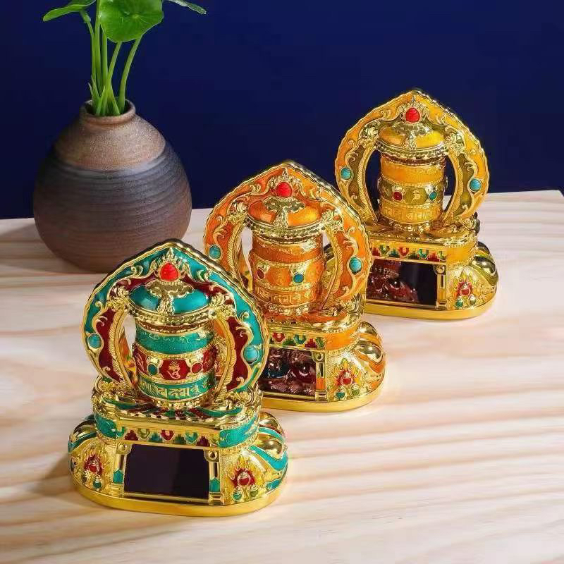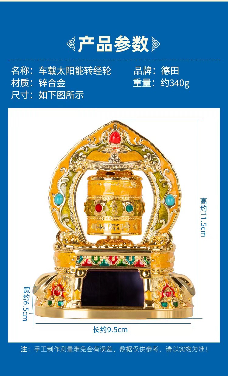 德田车载B版太阳能转经轮锌合金汽车摆件转经筒车内饰品殊胜 慈悲蓝 光明黄 智慧橙 三色