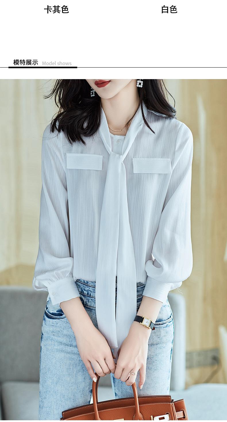 2023秋装新款衬衫女长袖宽松雪纺衫纯色女士衬衣A2730