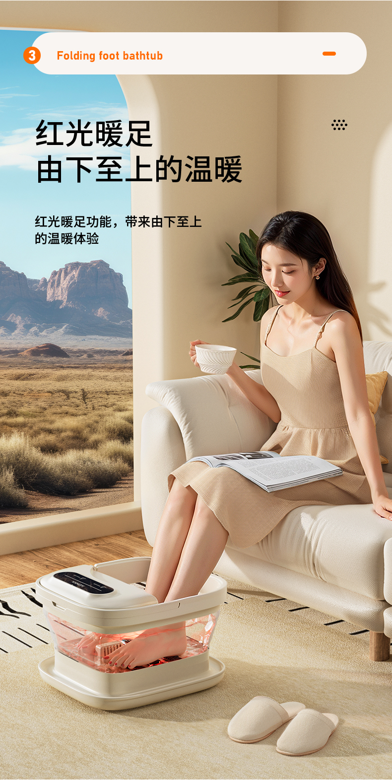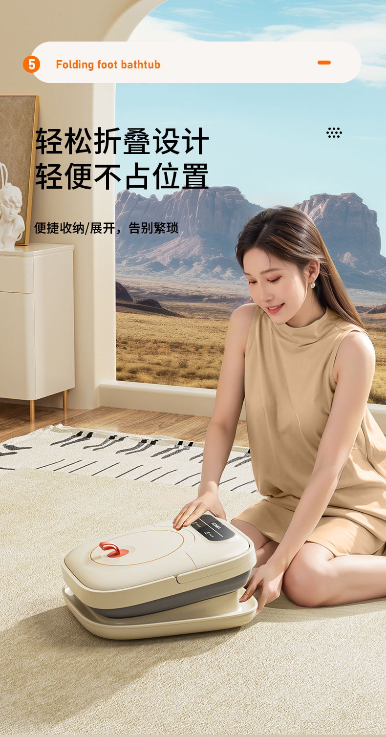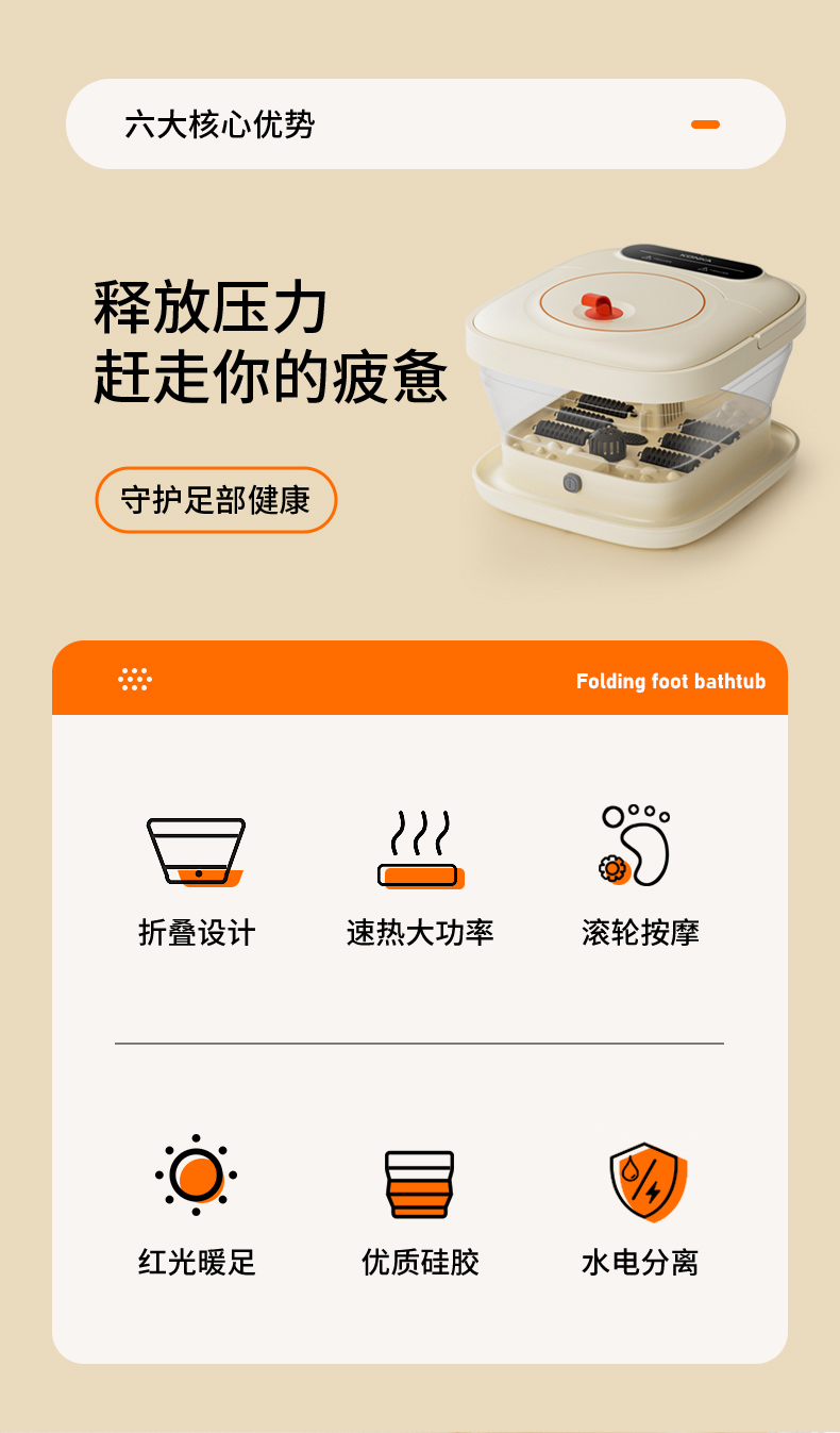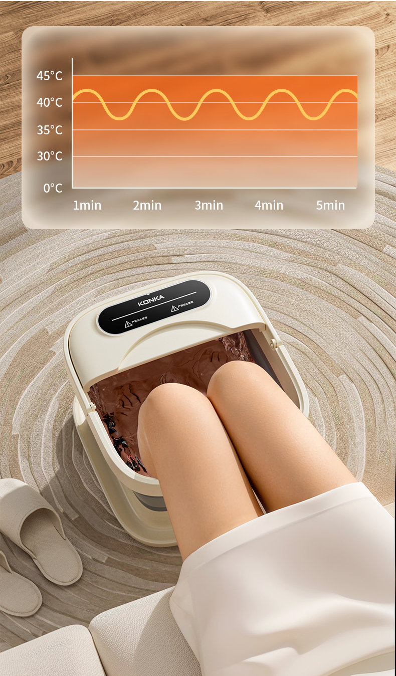 【恒温智能加热】康佳2025新款折叠足浴盆 红光暖足 凸点滚轮脚动按摩 一键启动 轻松折叠收纳 好用不占地的泡脚桶