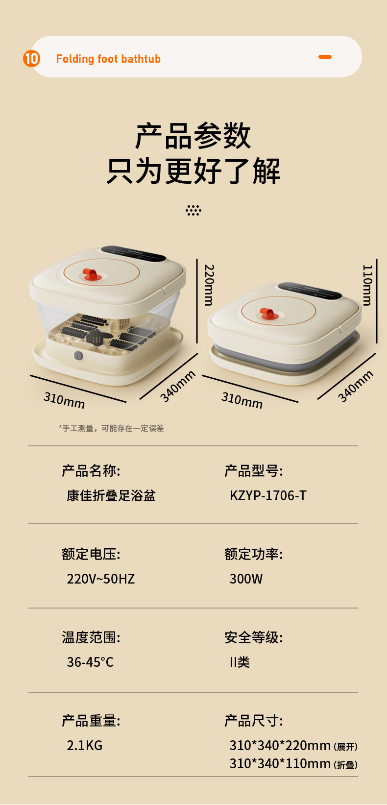 | 【品名】康佳折叠足浴盆 【发货地】上海 【发货快递】极兔 【不发货区域】港澳台,新疆,西藏 【补邮费地区】内蒙,甘肃,宁夏,青海,海南+15元 【发货时效】48小时,周末节假日顺延 【特别说明】 康佳足浴盆享受官方1年质保,质保期内非人为质量问题只换不修,足浴盆推荐加入手感舒适的温水,智能恒温系统将会开启工作保持水温46度(实际数据受环境影响略有损耗) 非质量问题导致的退货、拦截需扣除发出运费6元 |