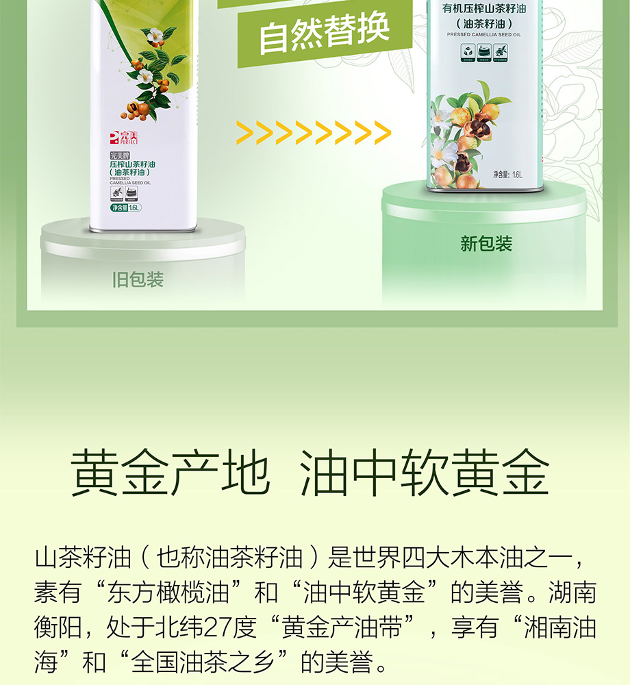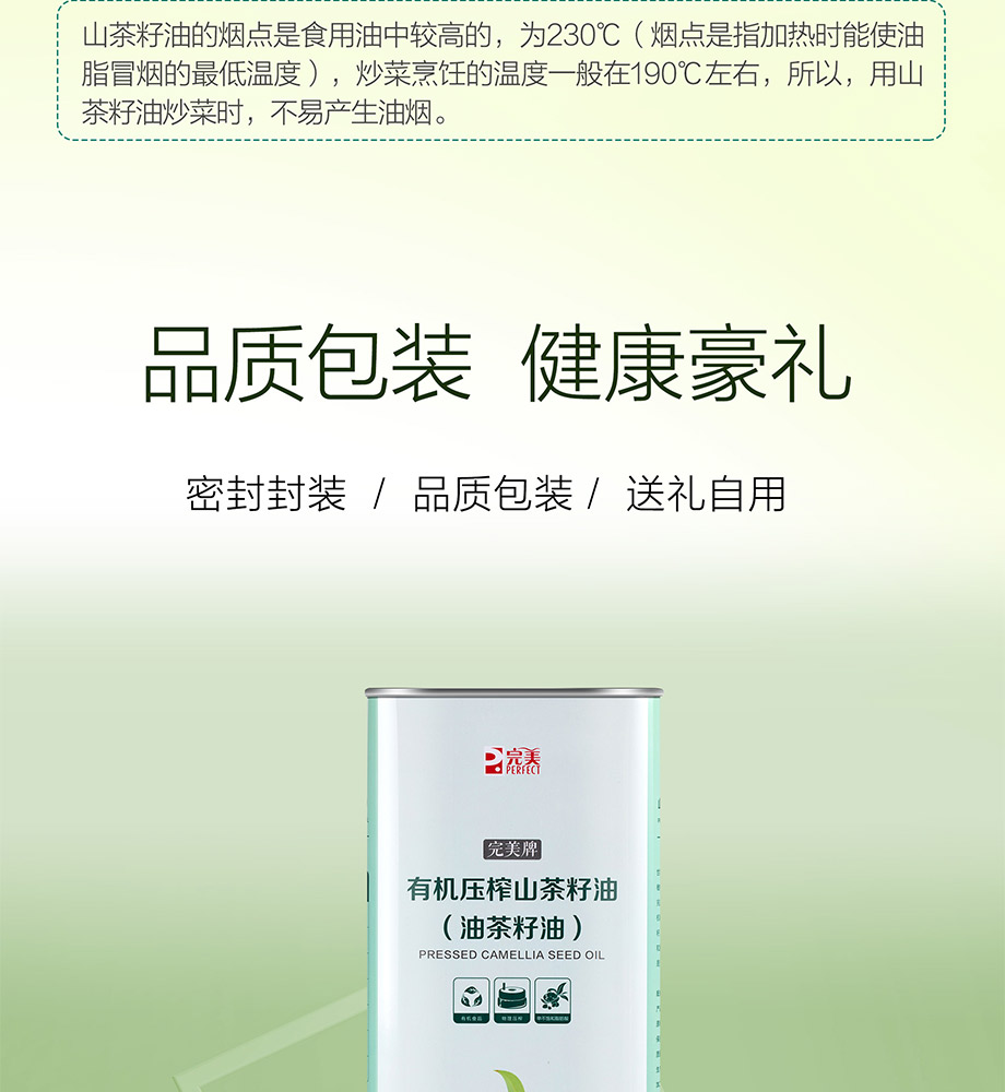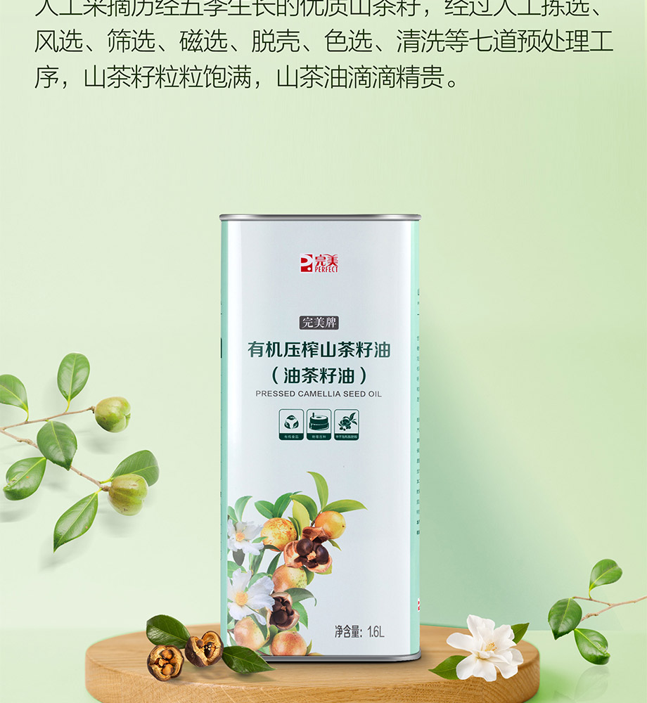 【预售 急单慎拍】完美牌有机压榨山茶籽油(油茶籽油) 1.6L/罐 原价336元