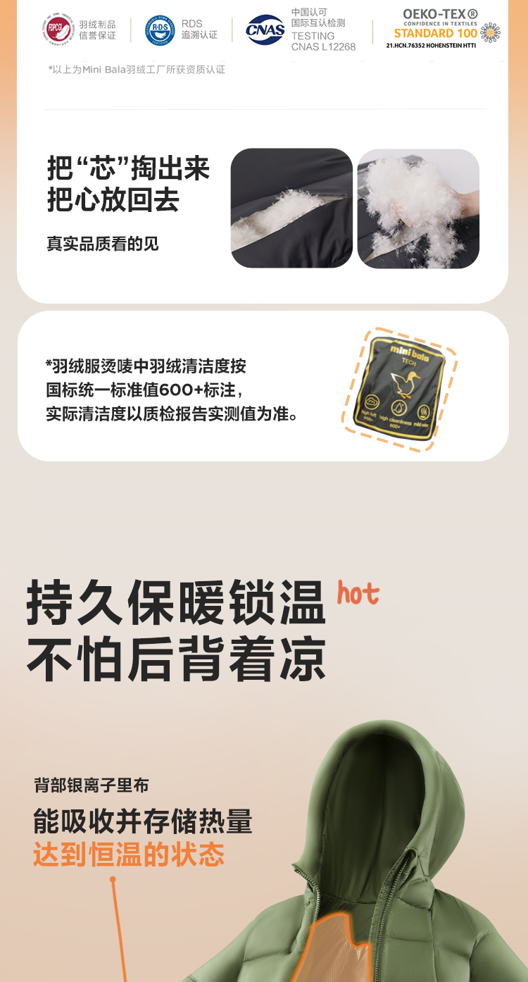 【热Hi2.0】迷你巴拉冬款男女童发热羽绒服亲子厚款羽绒外套