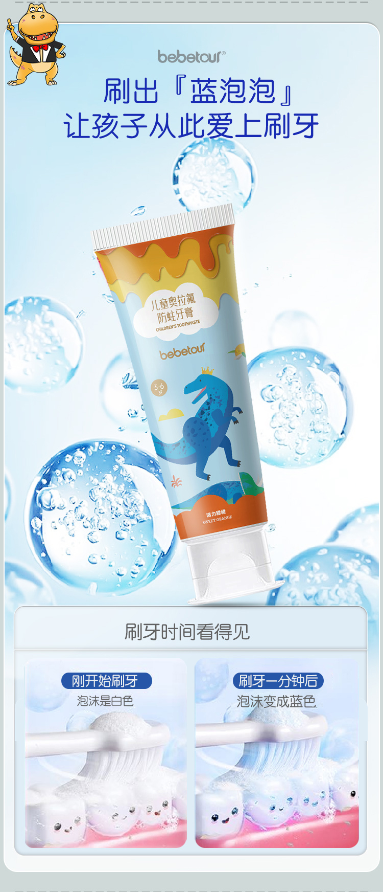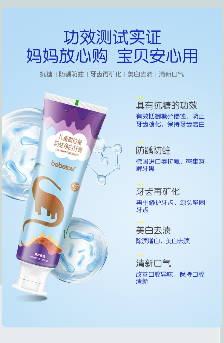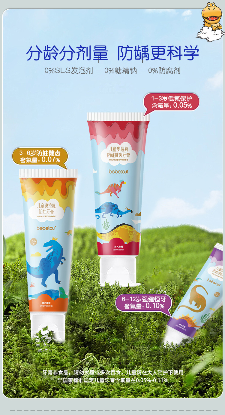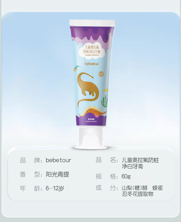 BebeTour6-12岁多数量儿童牙膏牙刷组合防蛀净白呵护口腔健康软毛