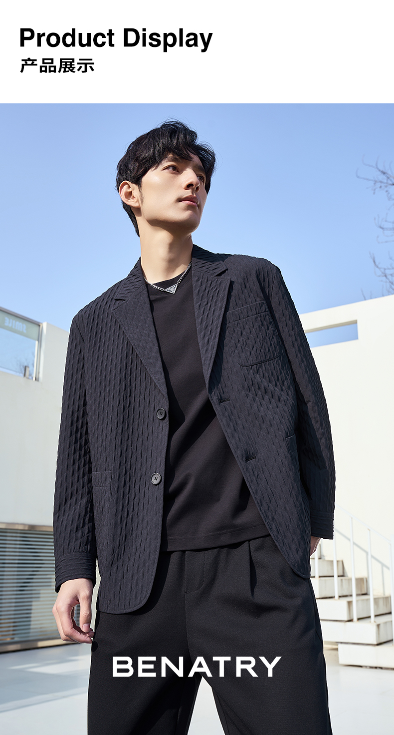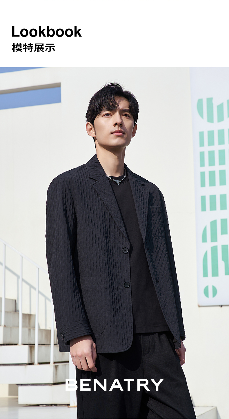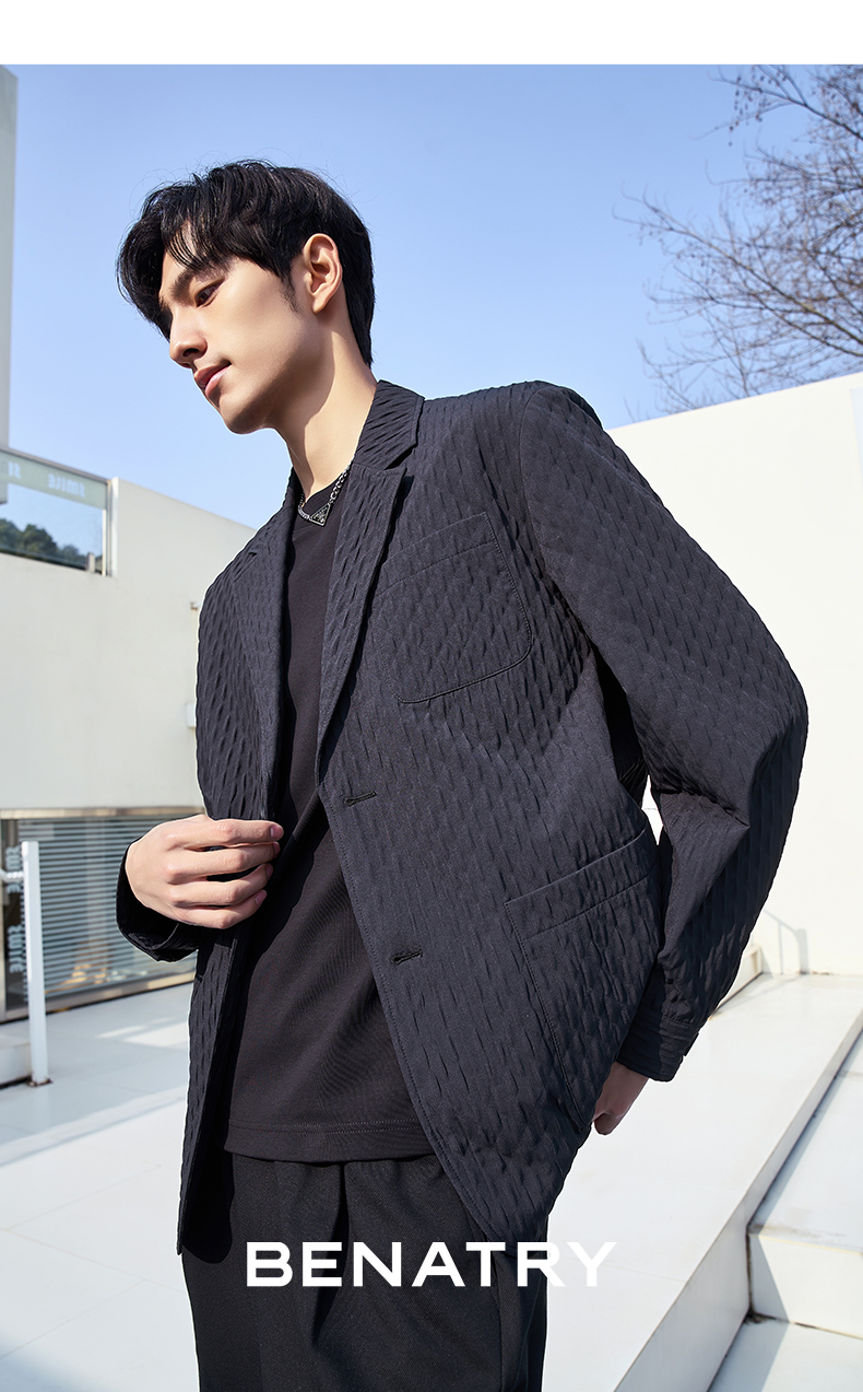 贝纳川时尚纹理感男士休闲西服外套ECT115001