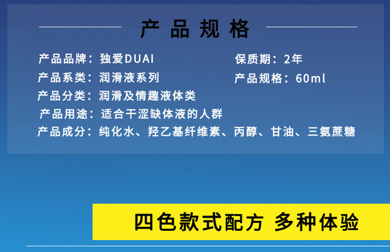 独爱 人体润滑油60ML 润滑液水溶性免洗可舔人体润滑油男女士夫妻房事专用后庭肛门润滑剂私处精油成人情趣性用品