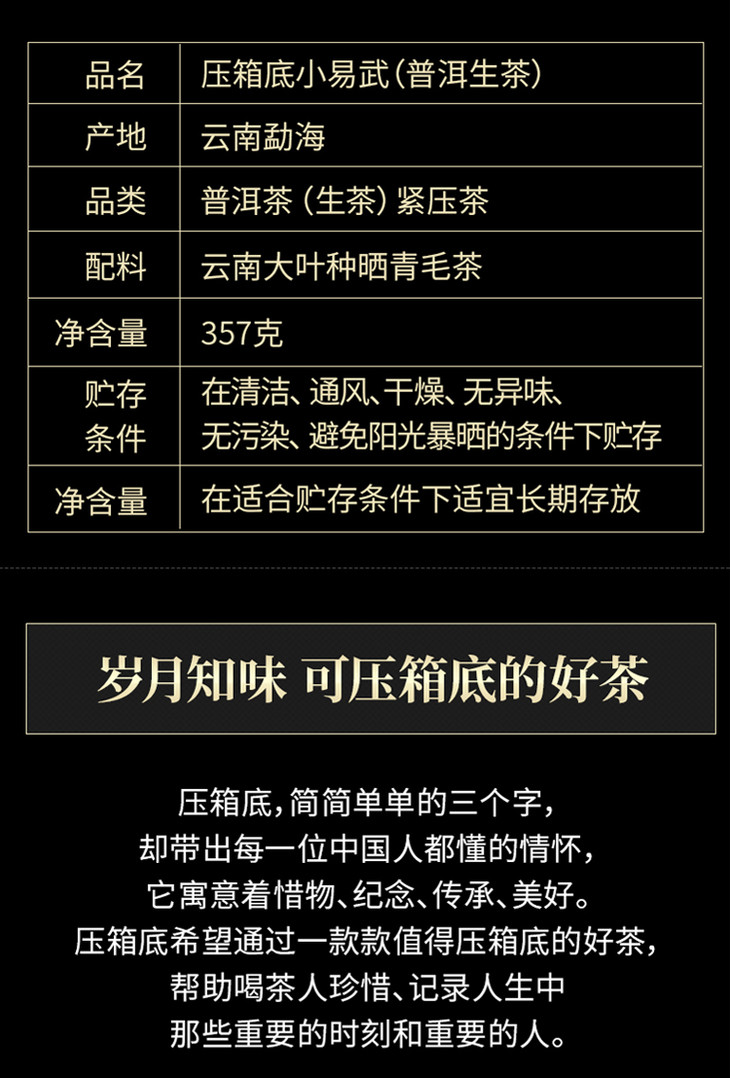 压箱底品牌,专注于打造可收藏、可传承、可送礼、可纪念人生重要时刻的中高端茶品。