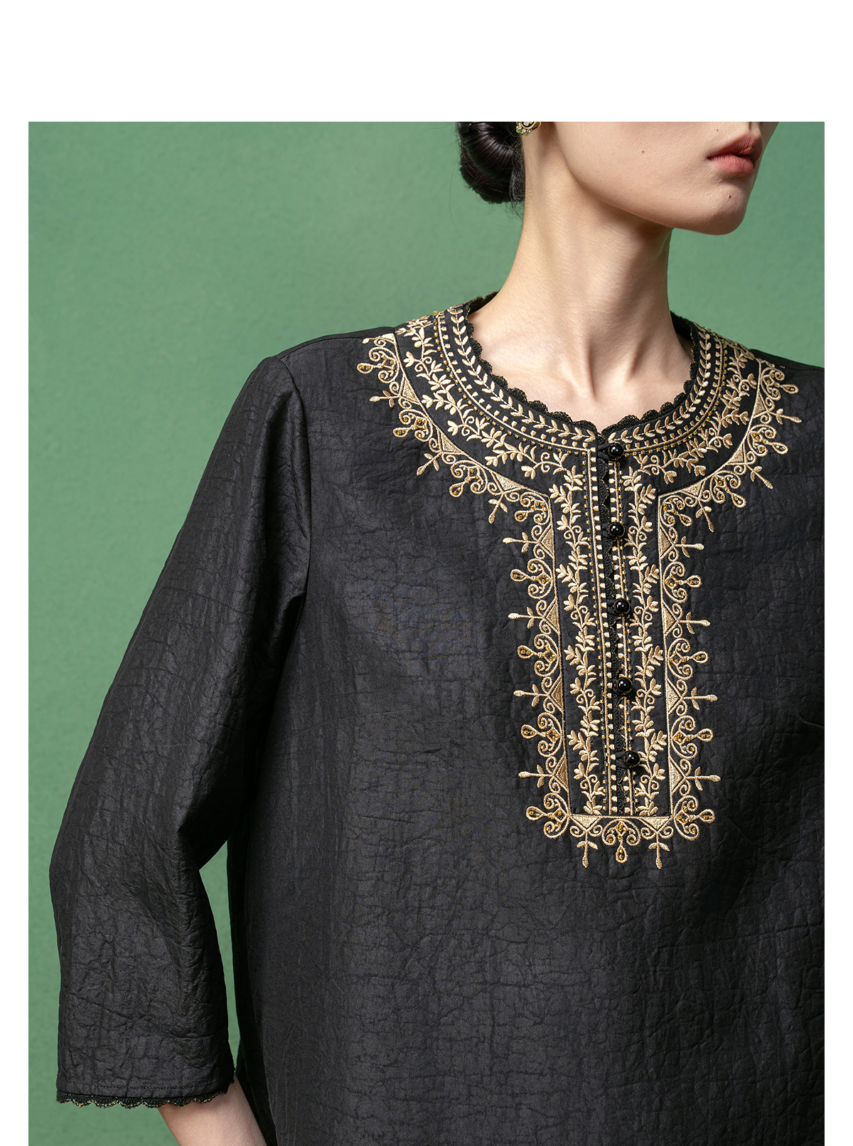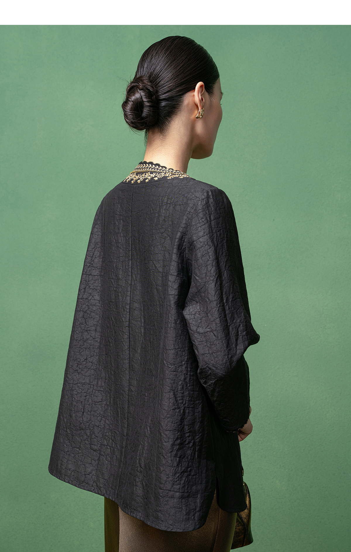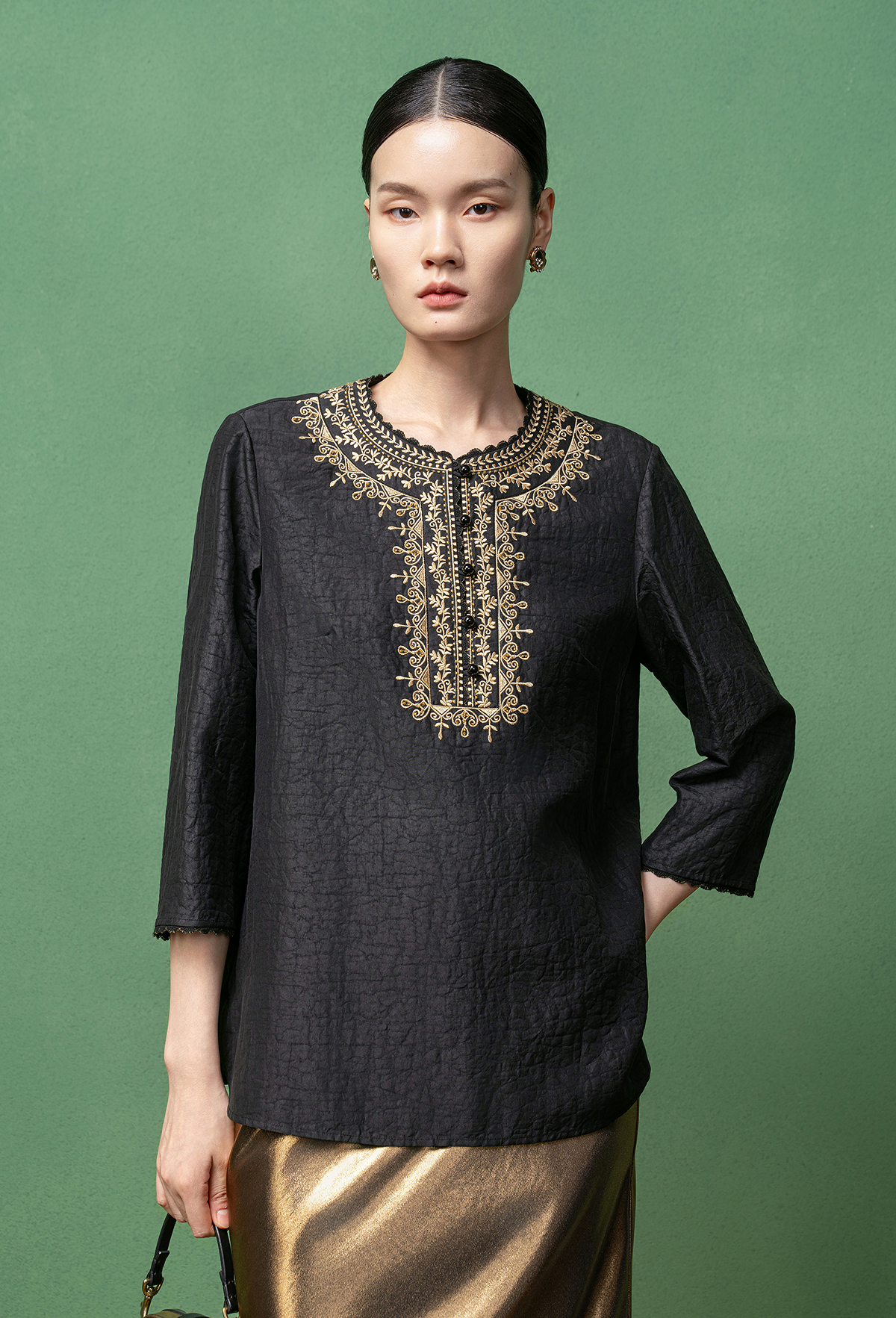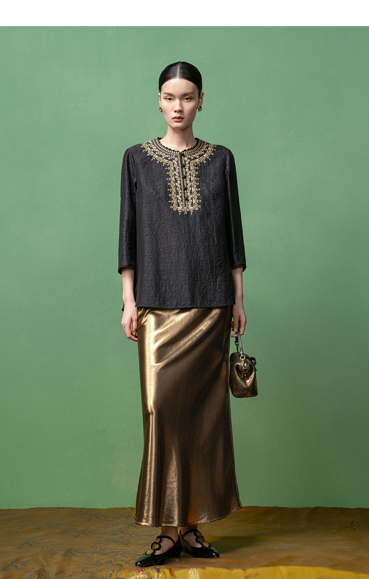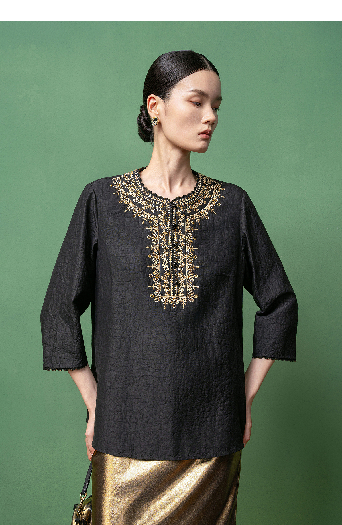 【林栖设计小店】【非遗香云纱】桑蚕丝衬衣绣花钉珠2025秋季新款上衣女1953317