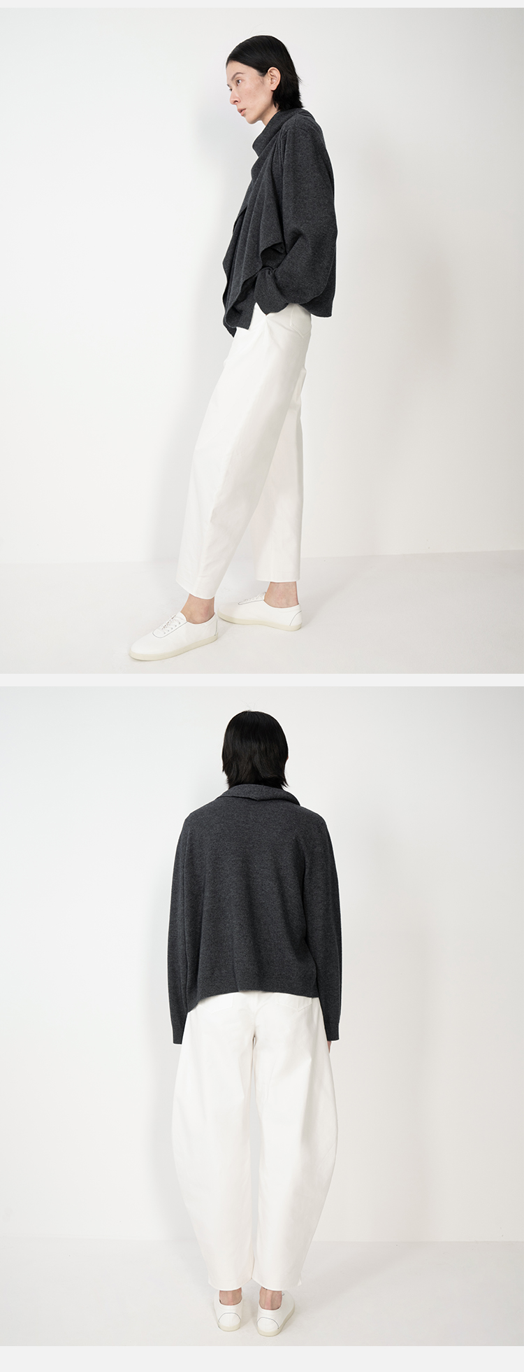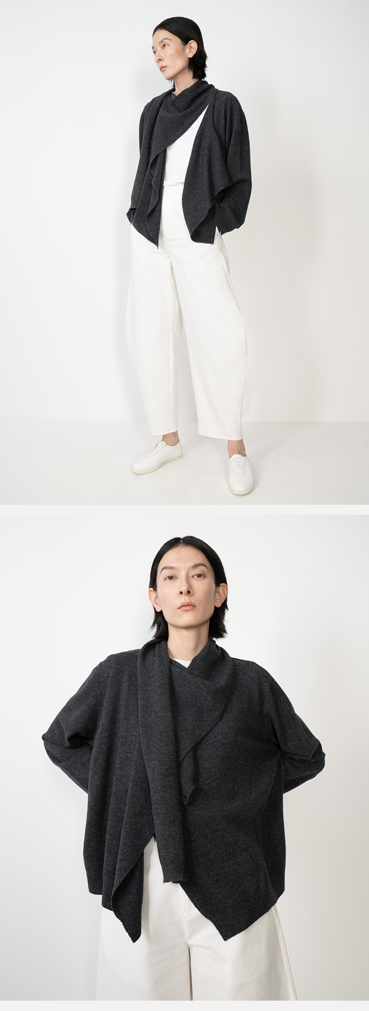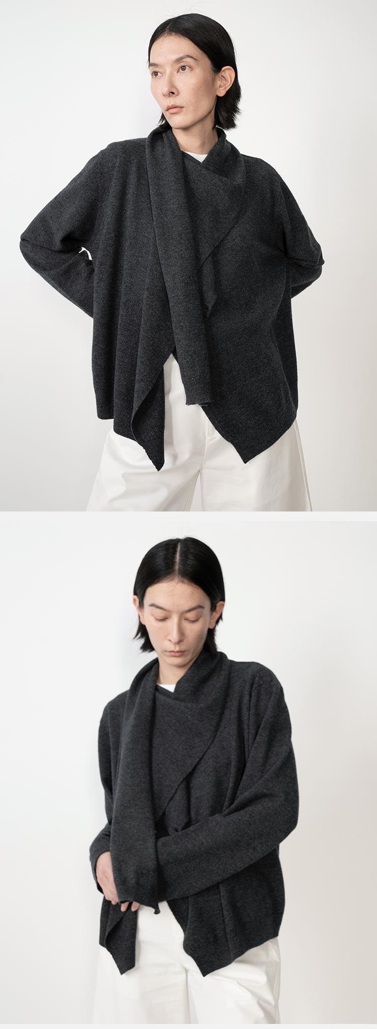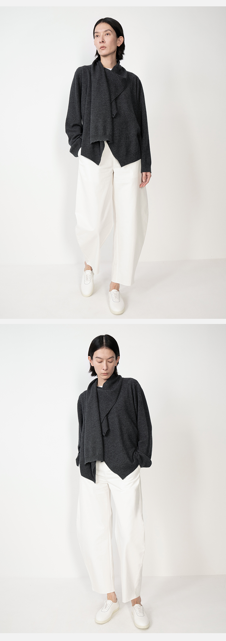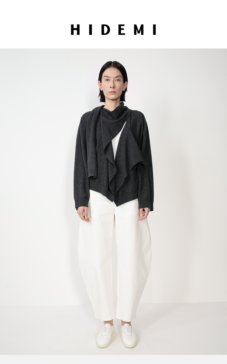 HIDEMI 美丽奴羊毛不对称多穿式毛织上衣