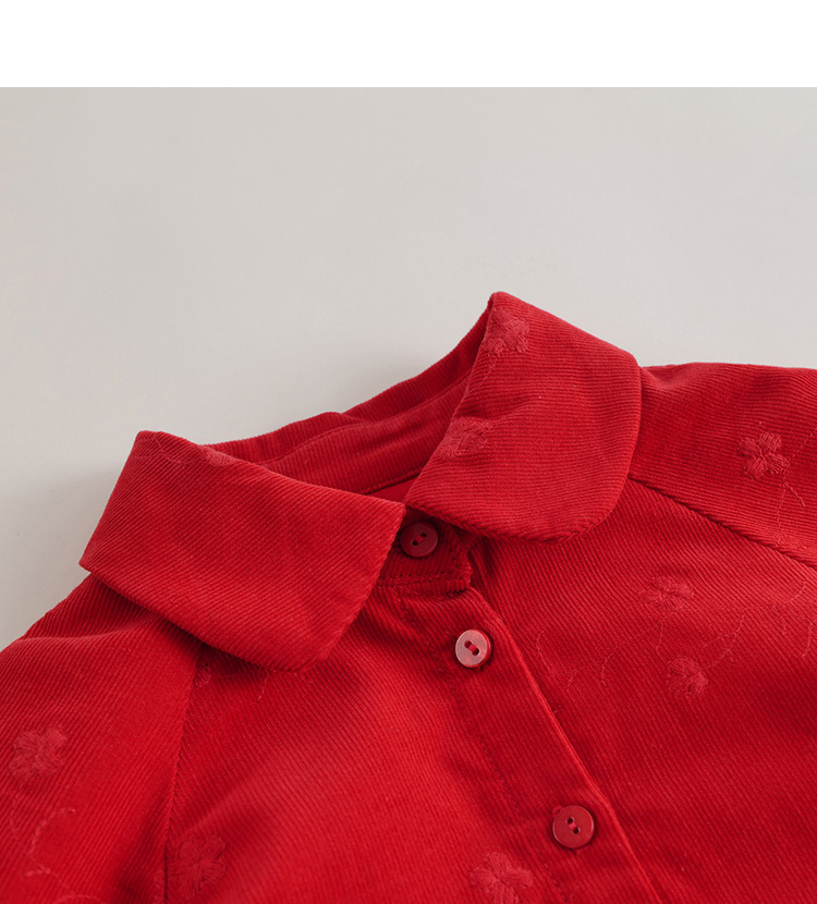 【马克珍妮 芦芙】秋装新款 刺绣小花灯芯绒连衣裙221303