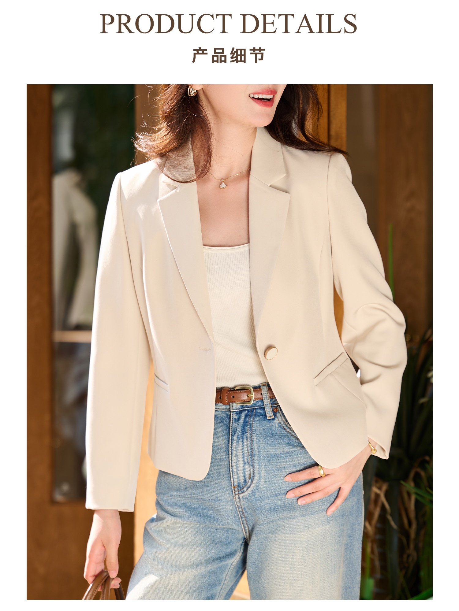 爆款西服 奶油杏百搭王 职业OL小西装 米思阳2026春新款时尚气质修身显瘦短款外套女6029
