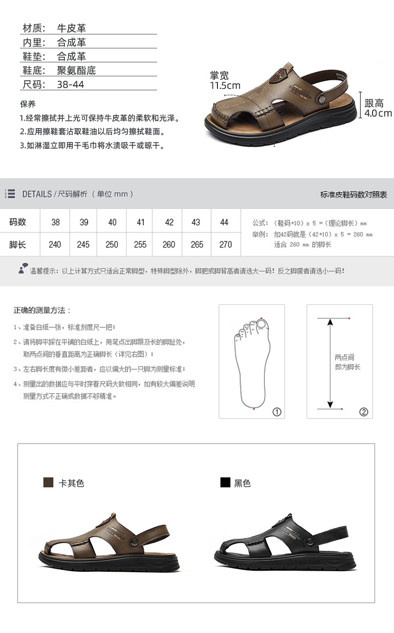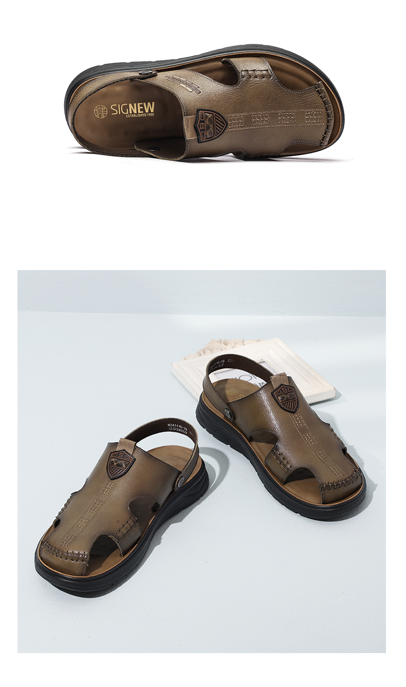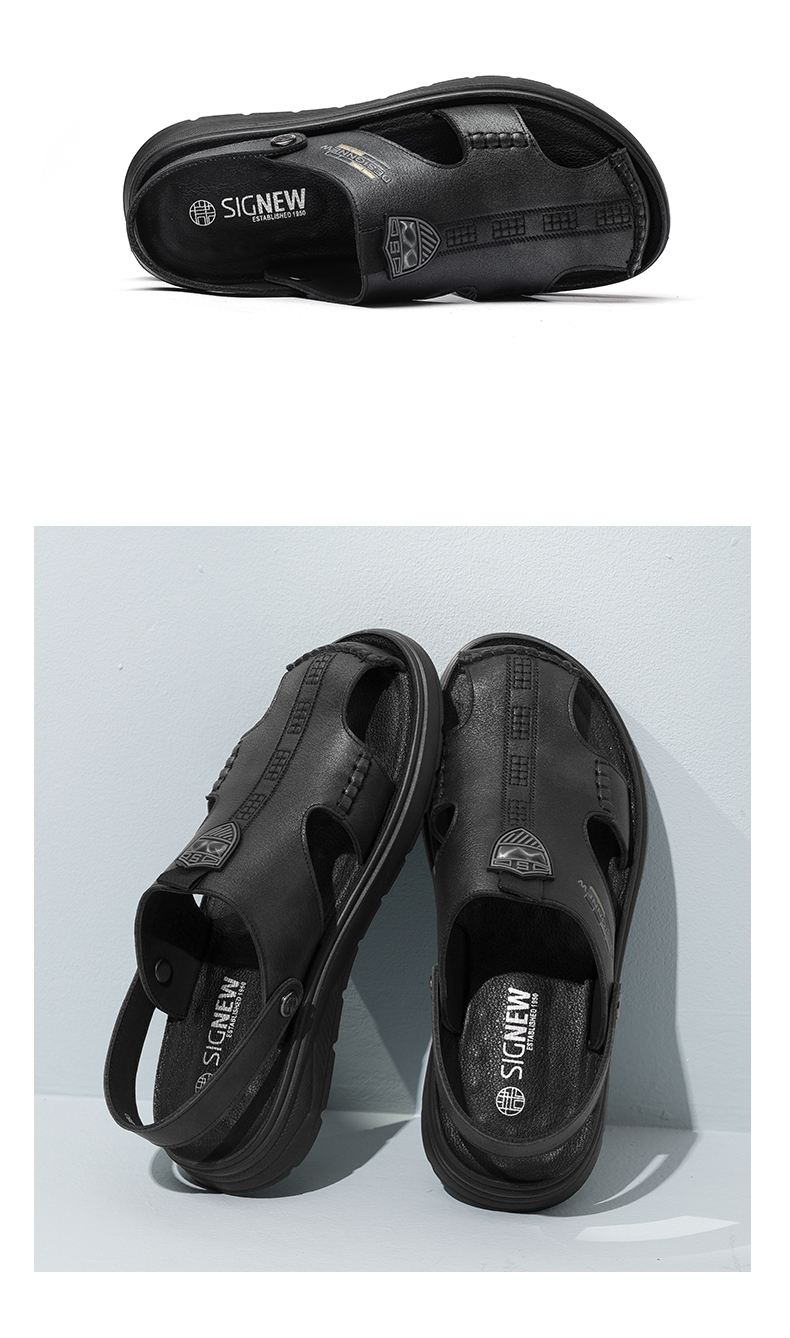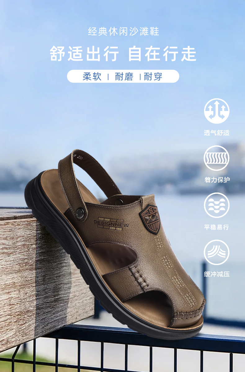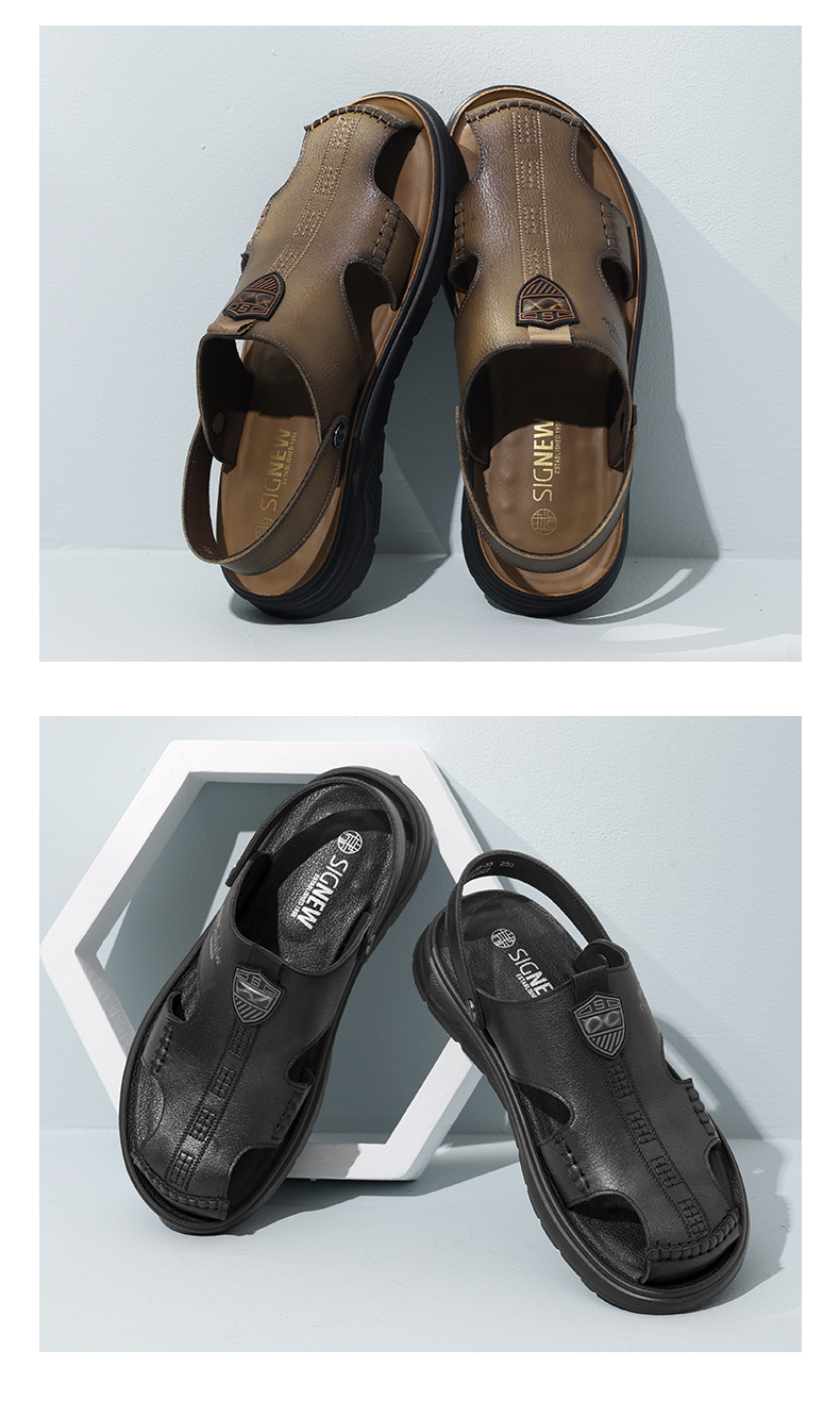 信诺 真皮舒适男鞋 2024新款夏季包头软底凉拖鞋中老年爸爸鞋凉鞋