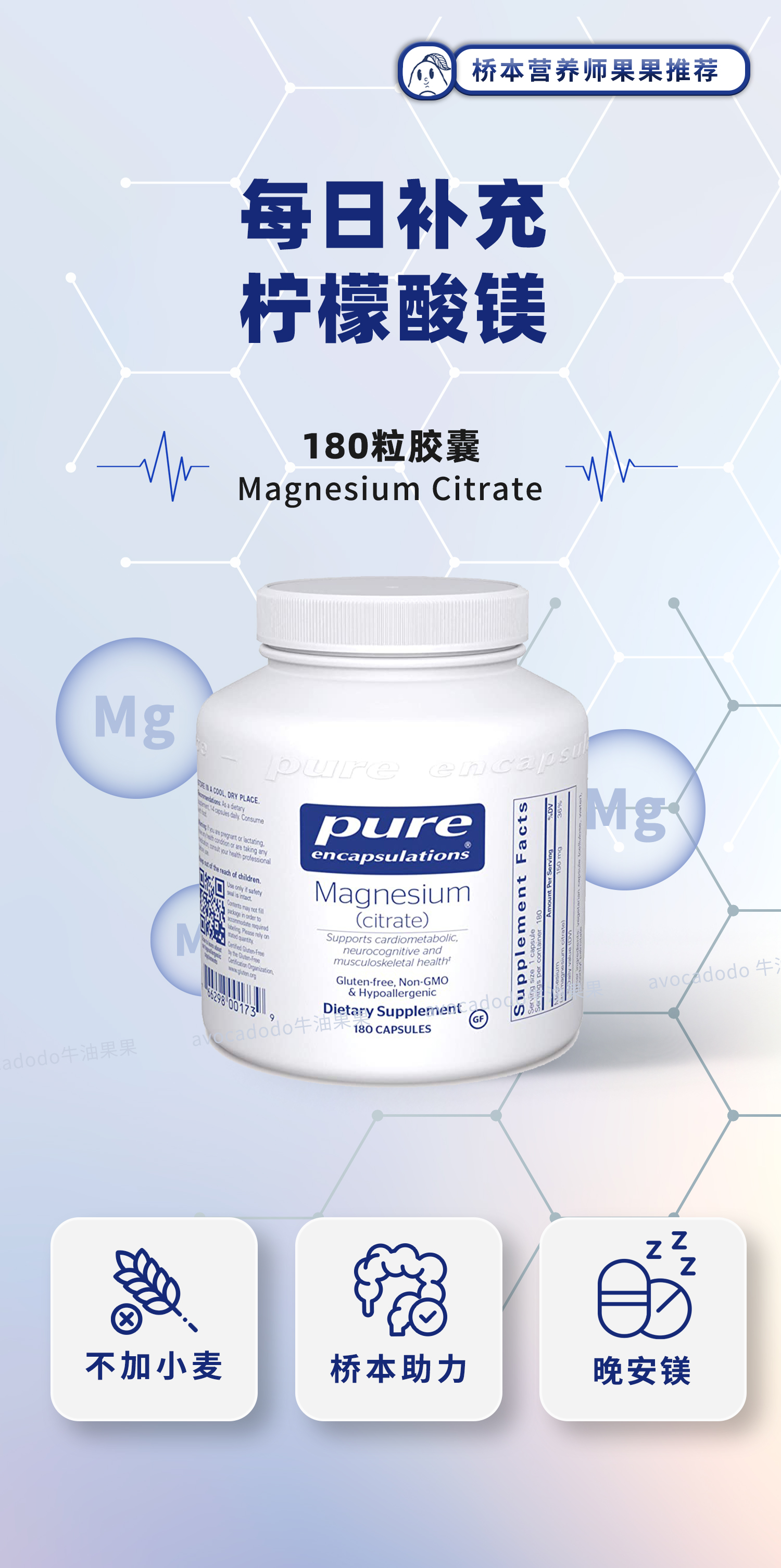 保税仓发货倍宜Pure柠檬酸镁180粒神经情绪晚安注意力牛油果果桥本