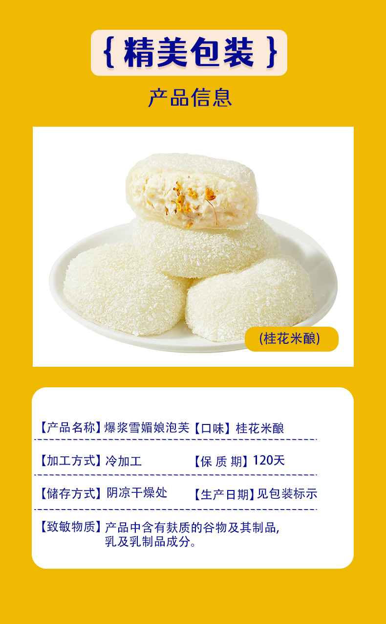 【19.9到手一箱❗️爆浆桂花雪媚娘】甄选品质原料制作,一口爆浆味道层次丰富,一口流连忘返,Q弹软糯花香四溢,爆浆流心泡芙,糯米团糯叽叽雪胖子,下午茶休闲零食小吃L