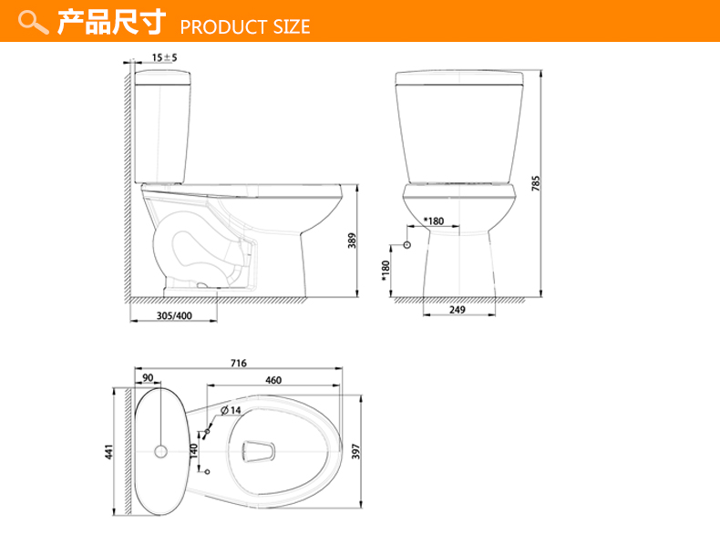 美标恒瑞分体座厕305mmCCAS2765-0200400C0