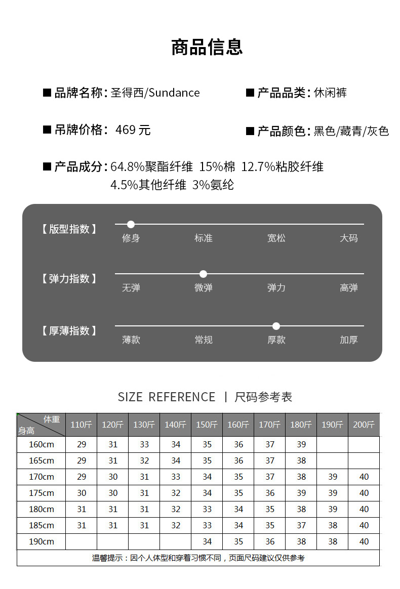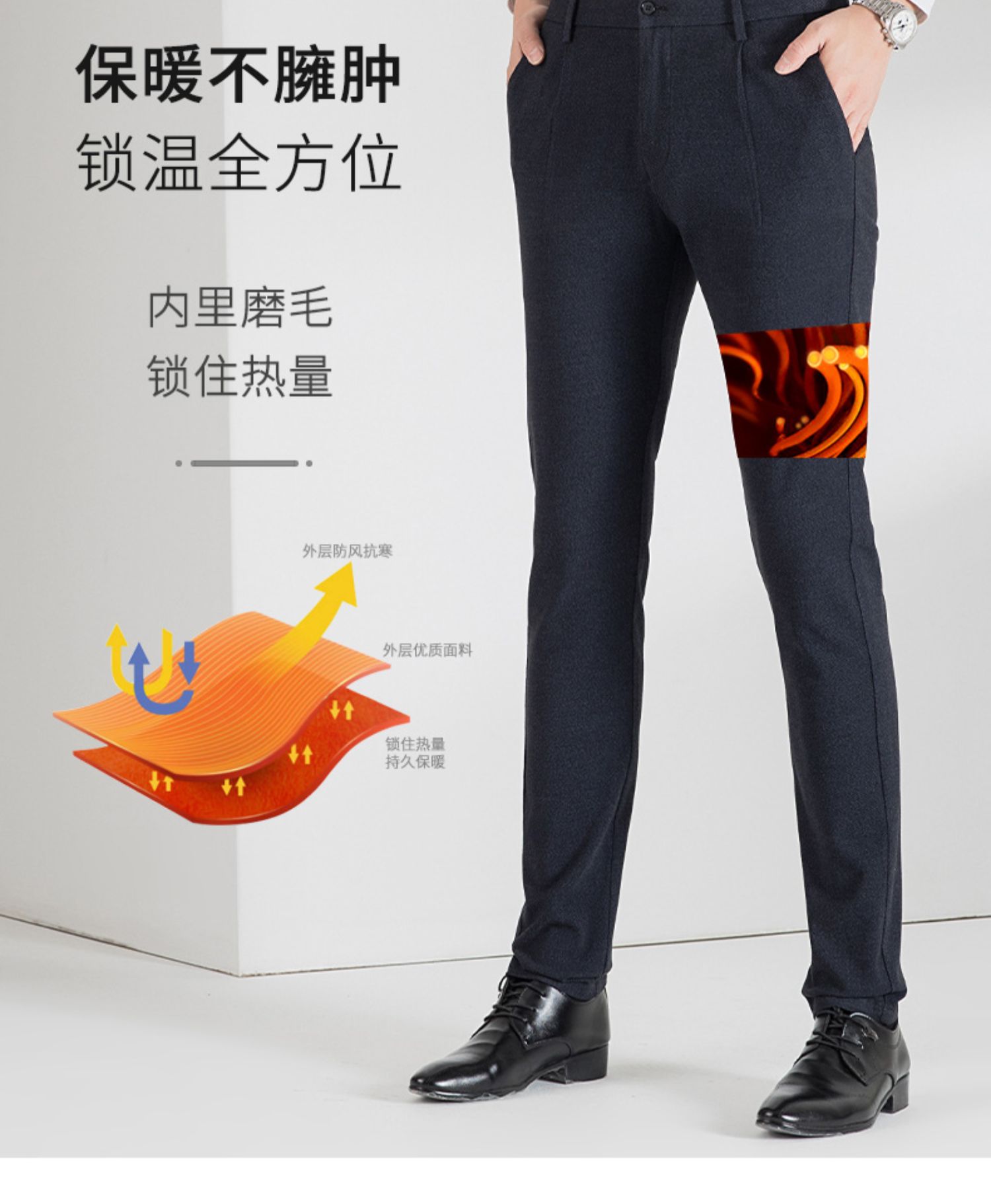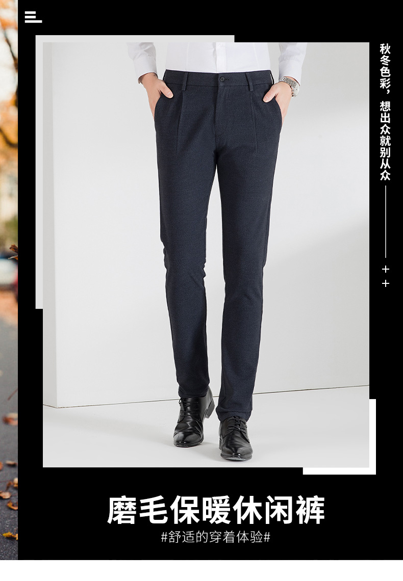 圣得西男士磨毛保暖加厚休闲裤冬季时尚修身直筒长裤男2042913030