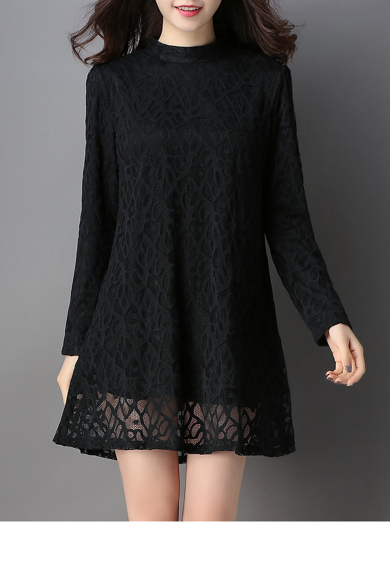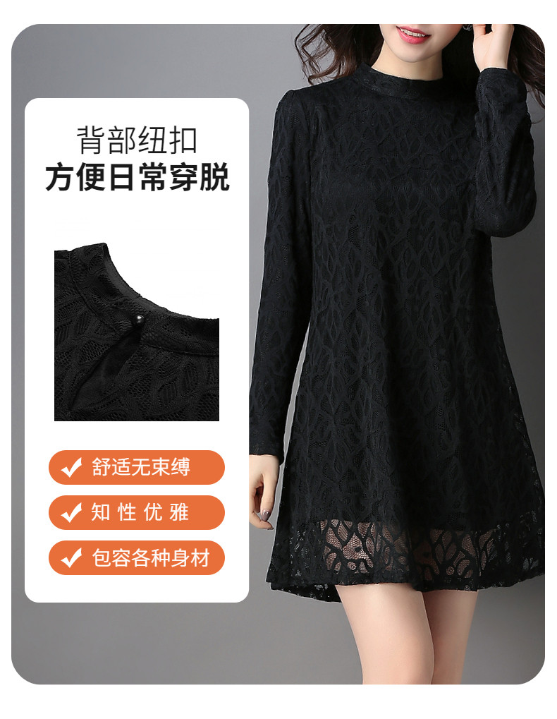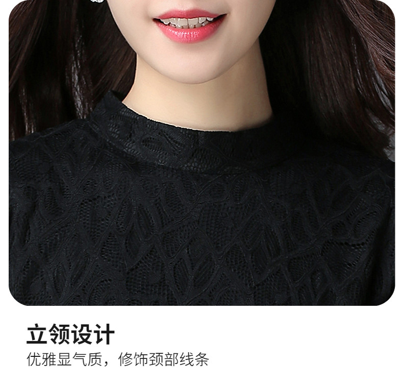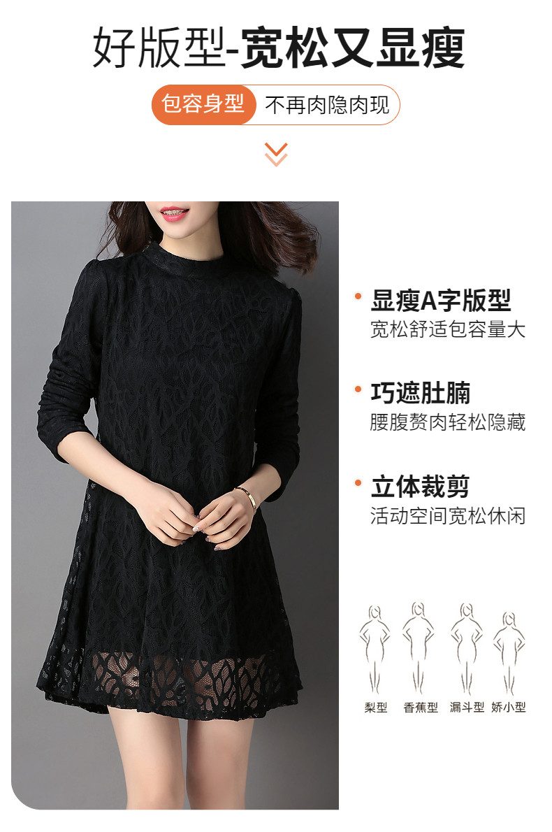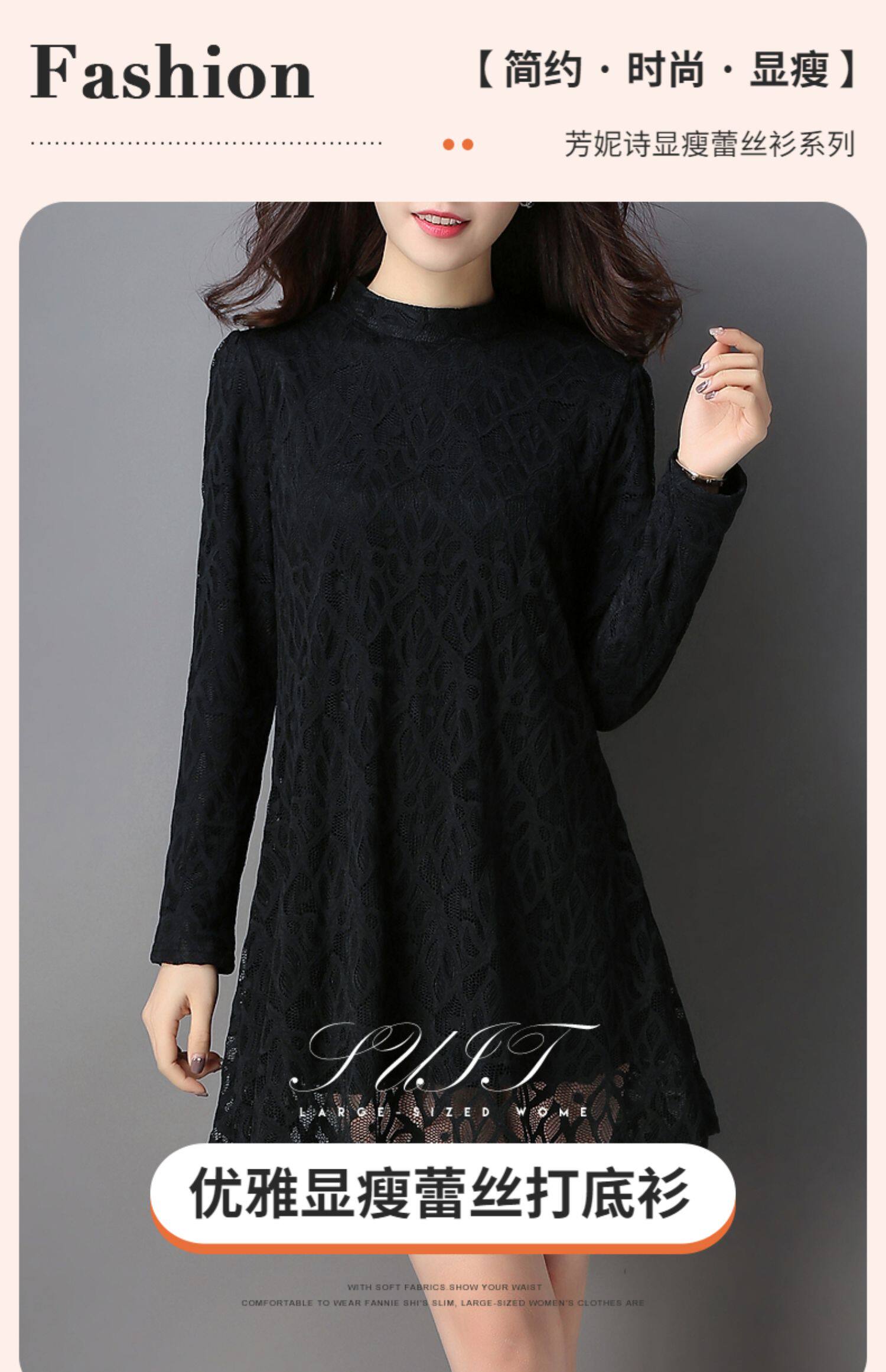 2026新款黑色大码蕾丝打底衫女中长款春秋季洋气长袖上衣时尚洋气
