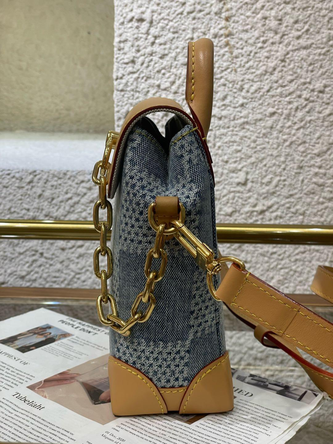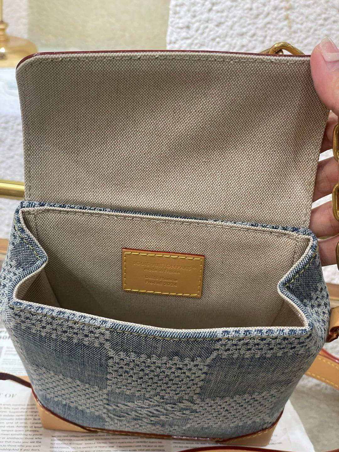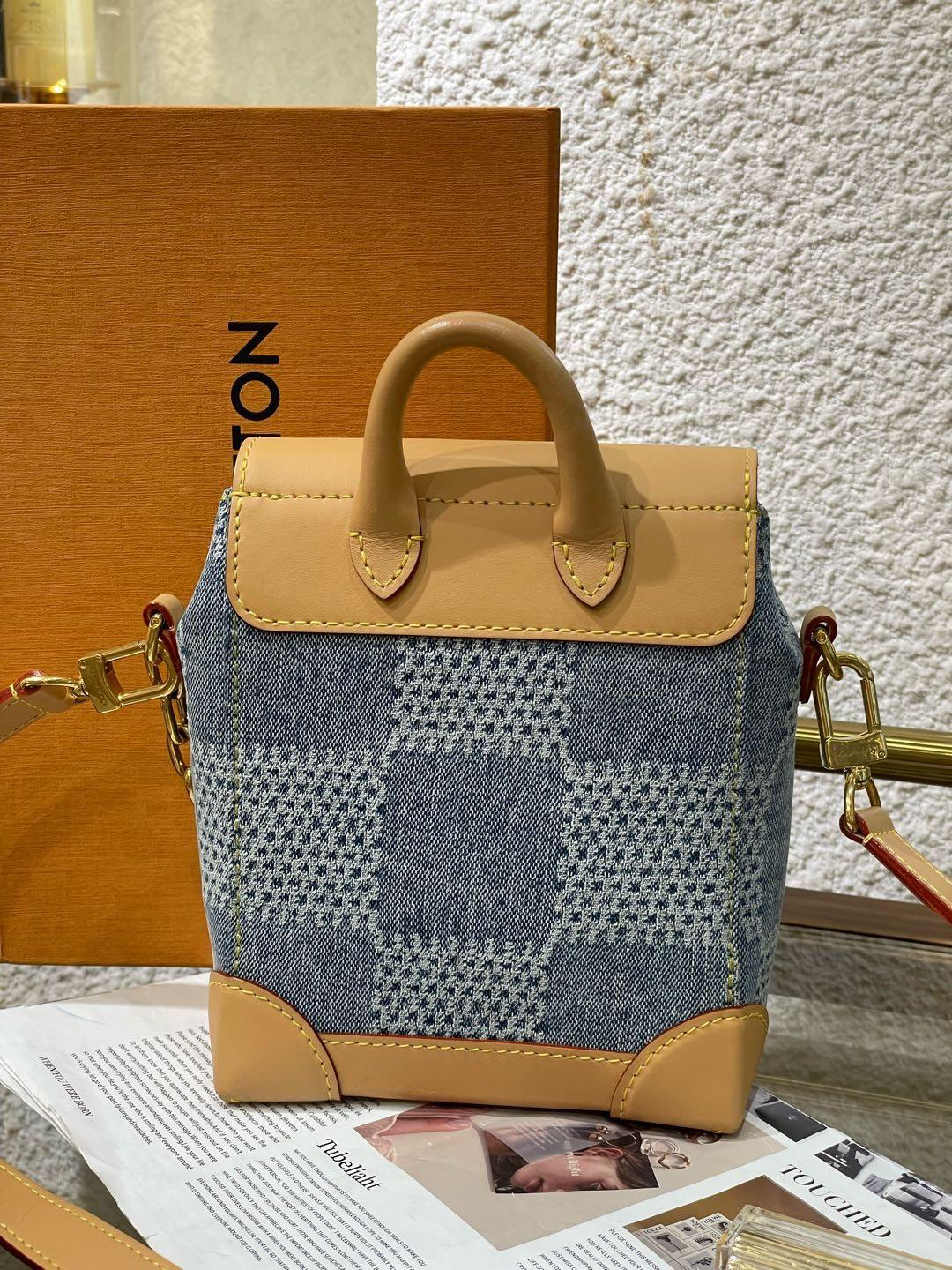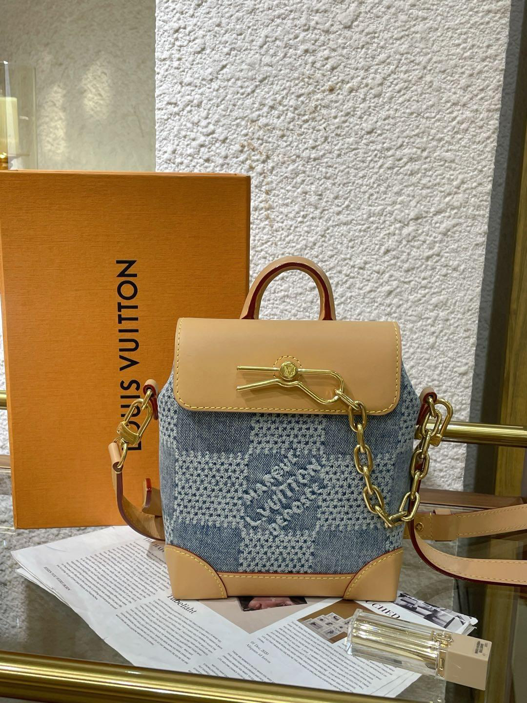 【商品详情】正品二手 LV steamer nano 新款 丹宁牛仔 拼色 小书包 斜挎包🍊95新 15x17 芯片款 配件:盒、吊牌、肩带、防尘袋。翻盖轻微使用感 底座有正常使用痕迹 小众特别 男女同款别错过