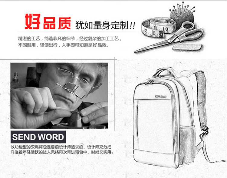 七匹狼双肩包 背包男女15.6英寸笔记本电脑包商务休闲通勤防泼水牛津布学生书包 黑色B0301872-201