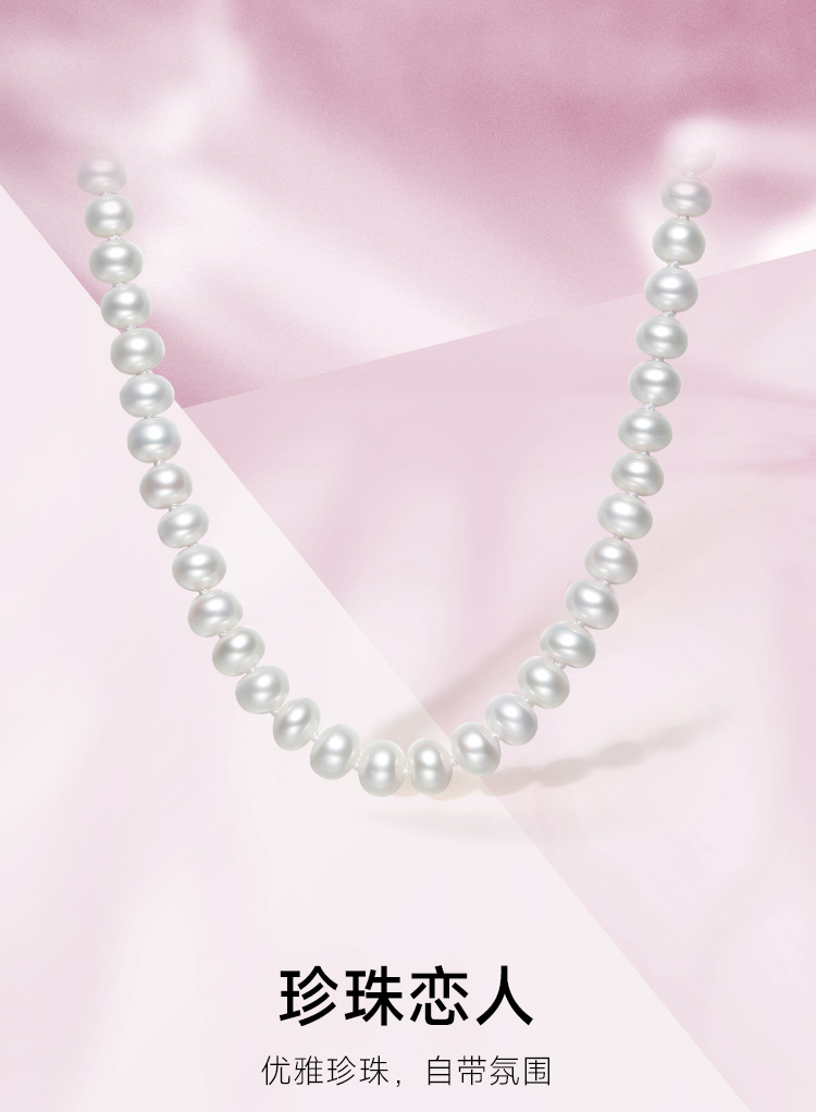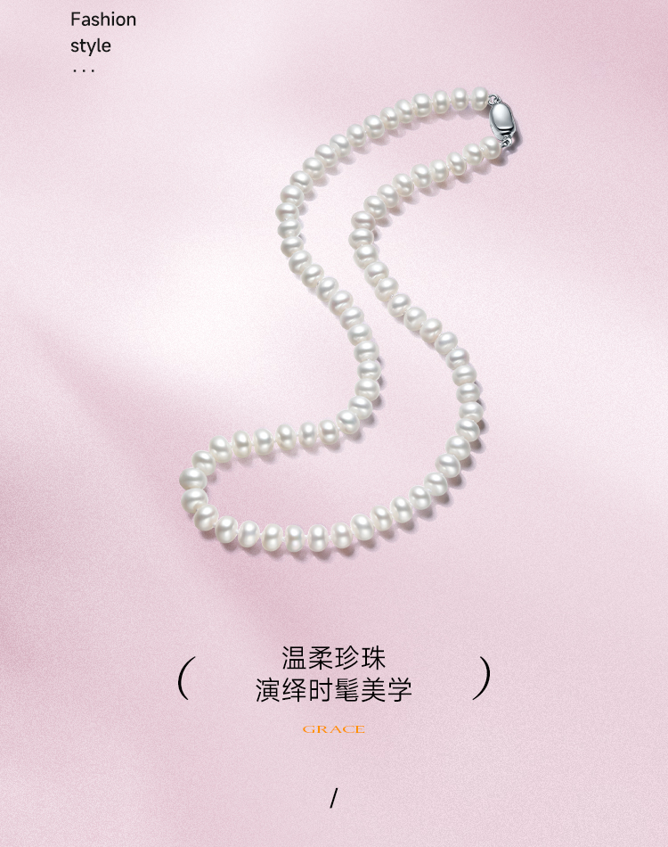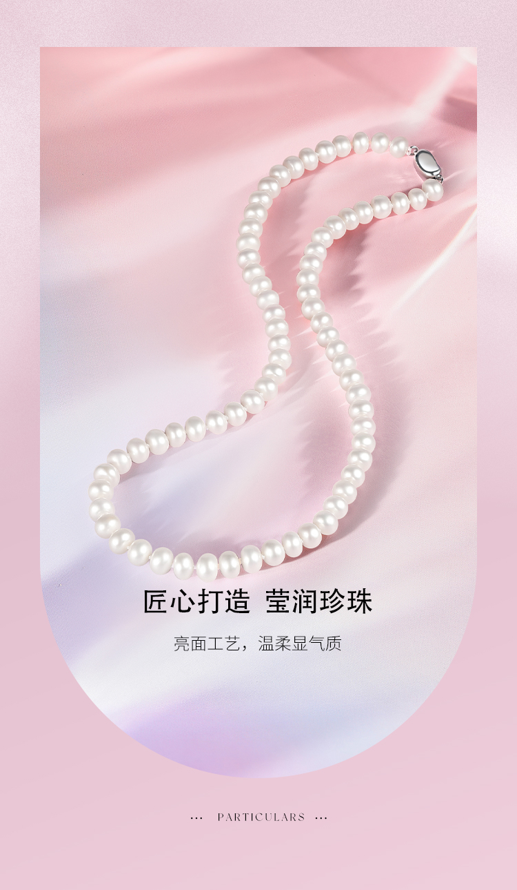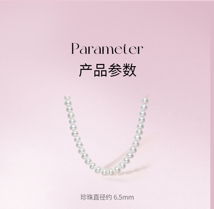 周六福S925银珍珠项链女淡水珍珠扁圆形6.5mm颈饰优雅送妈妈长辈